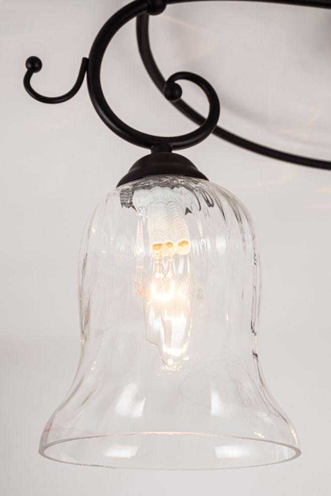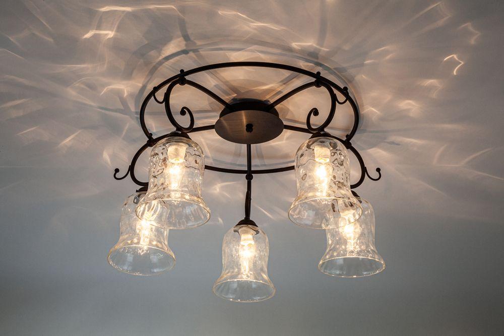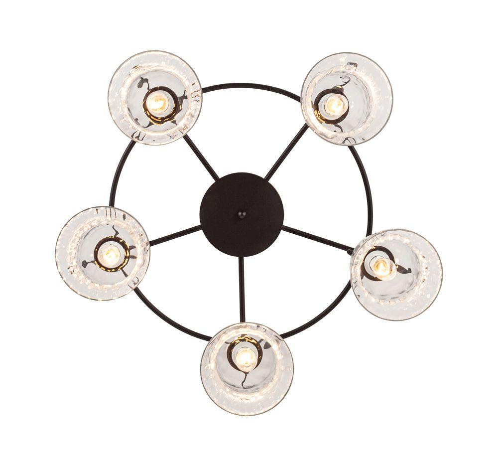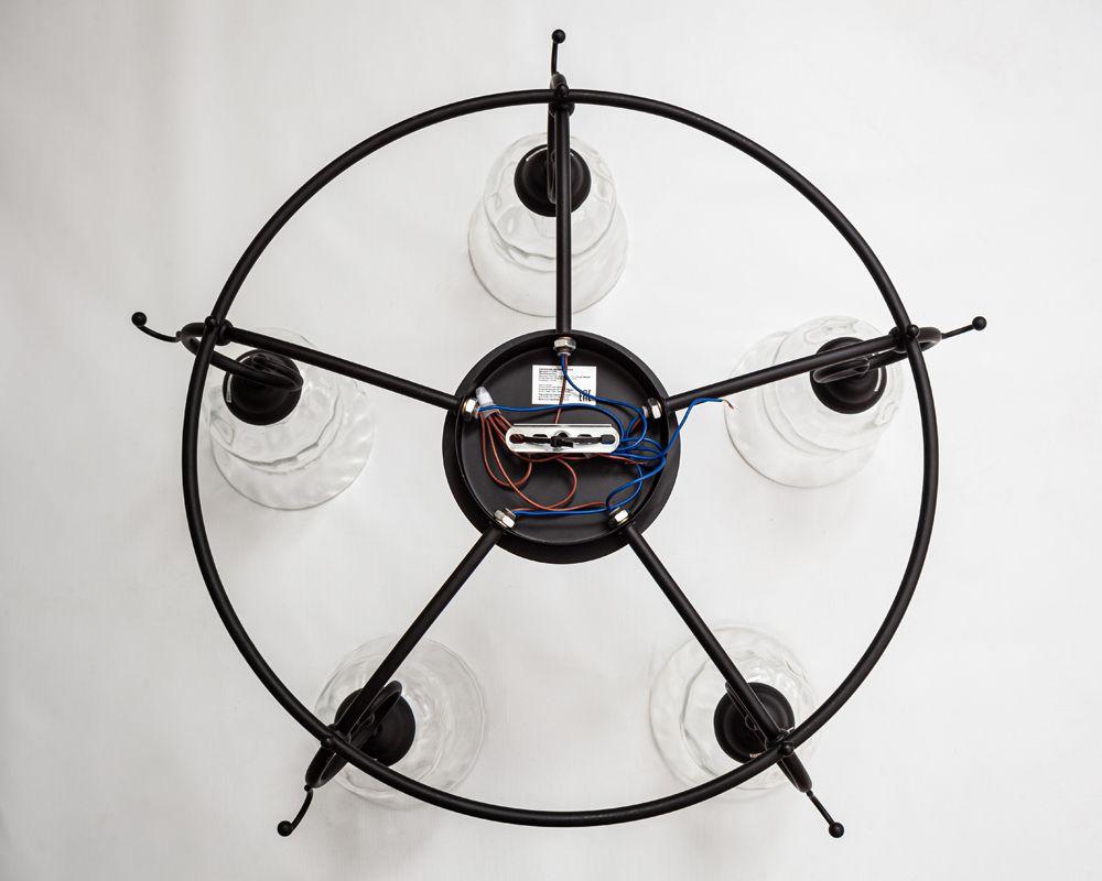 Производитель светильника рекомендует для устройства 5 ламп накаливания с цоколем E14 и мощностью 40 W, что позволит осветить помещение площадью 11,1 кв.м. Габариты изделия: высота – 320 мм, диаметр – 620 мм.