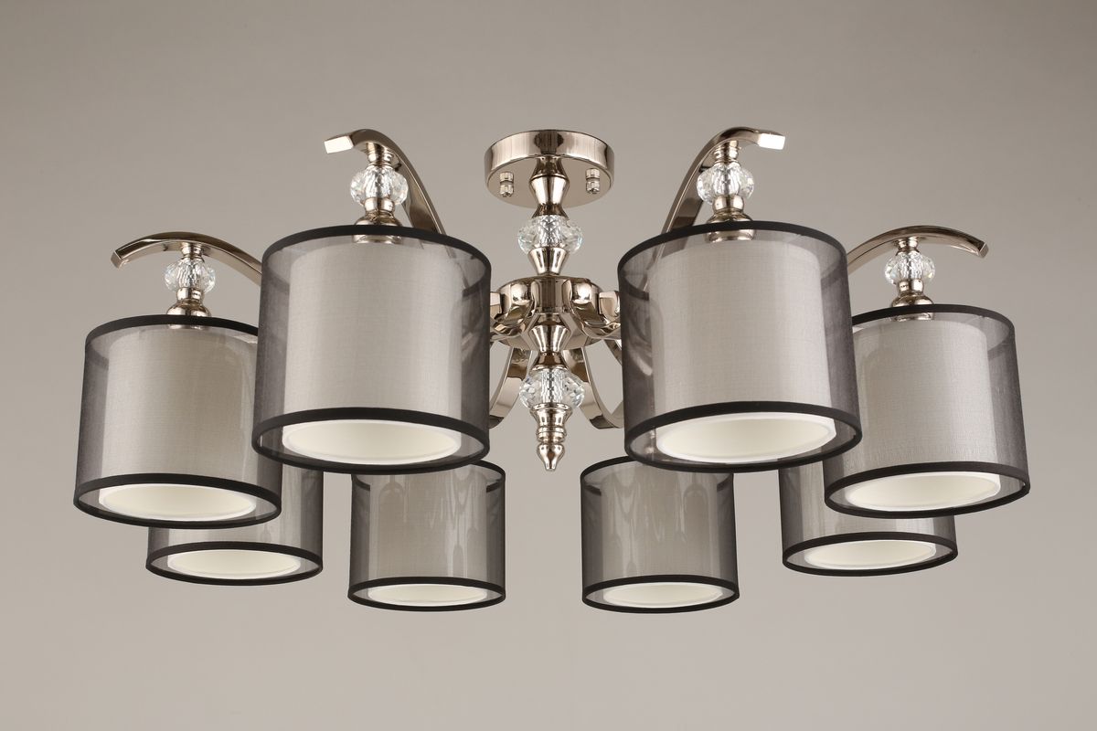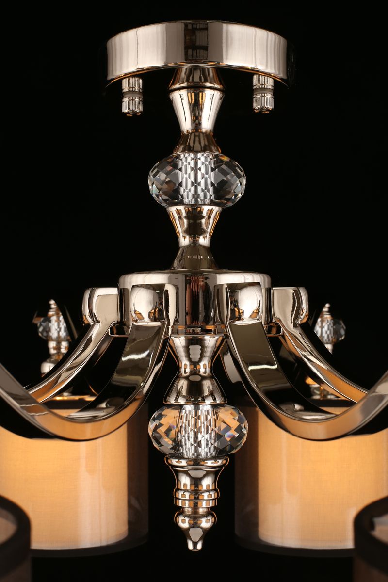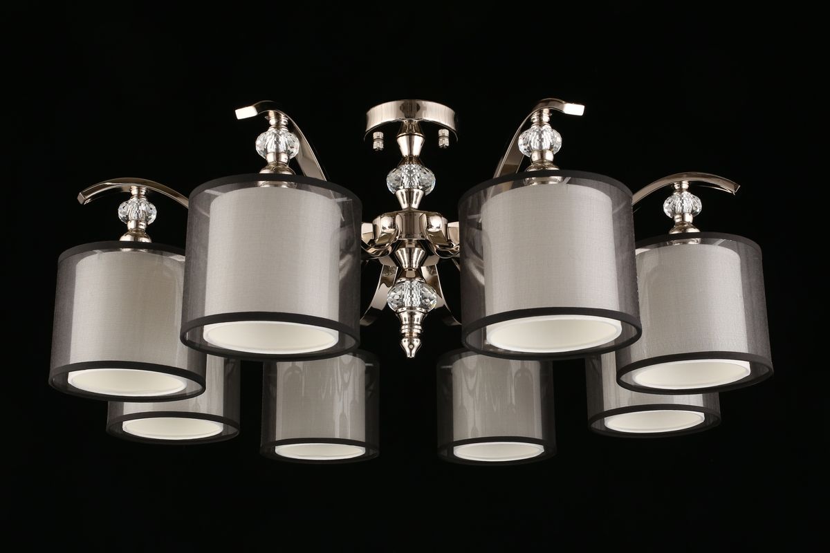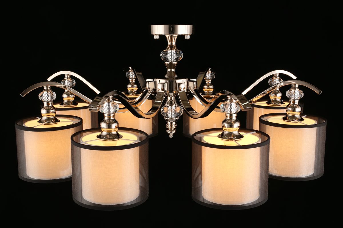 Производитель светильника рекомендует для устройства 8 ламп накаливания с цоколем E14 и мощностью 40 W, что позволит осветить помещение площадью 17 кв.м. Габариты изделия: высота – 350 мм, диаметр – 800 мм.