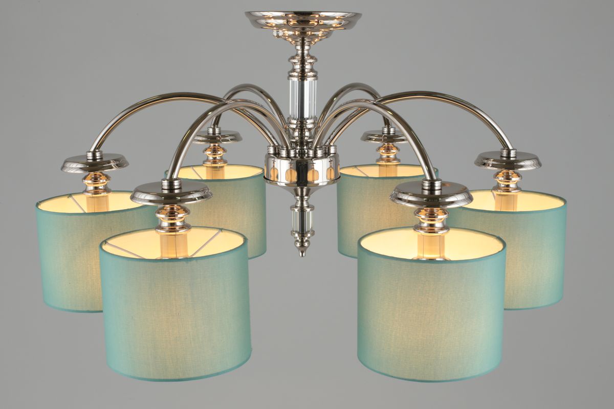 Потолочная люстра Aployt Nikolet APL.714.07.06 от бренда Aployt из коллекции Nikolet будет удачно смотреться в спальни в стиле модерн. Светильник выполнен из ткани с плафонами в форме цилиндра бирюзового цвета.