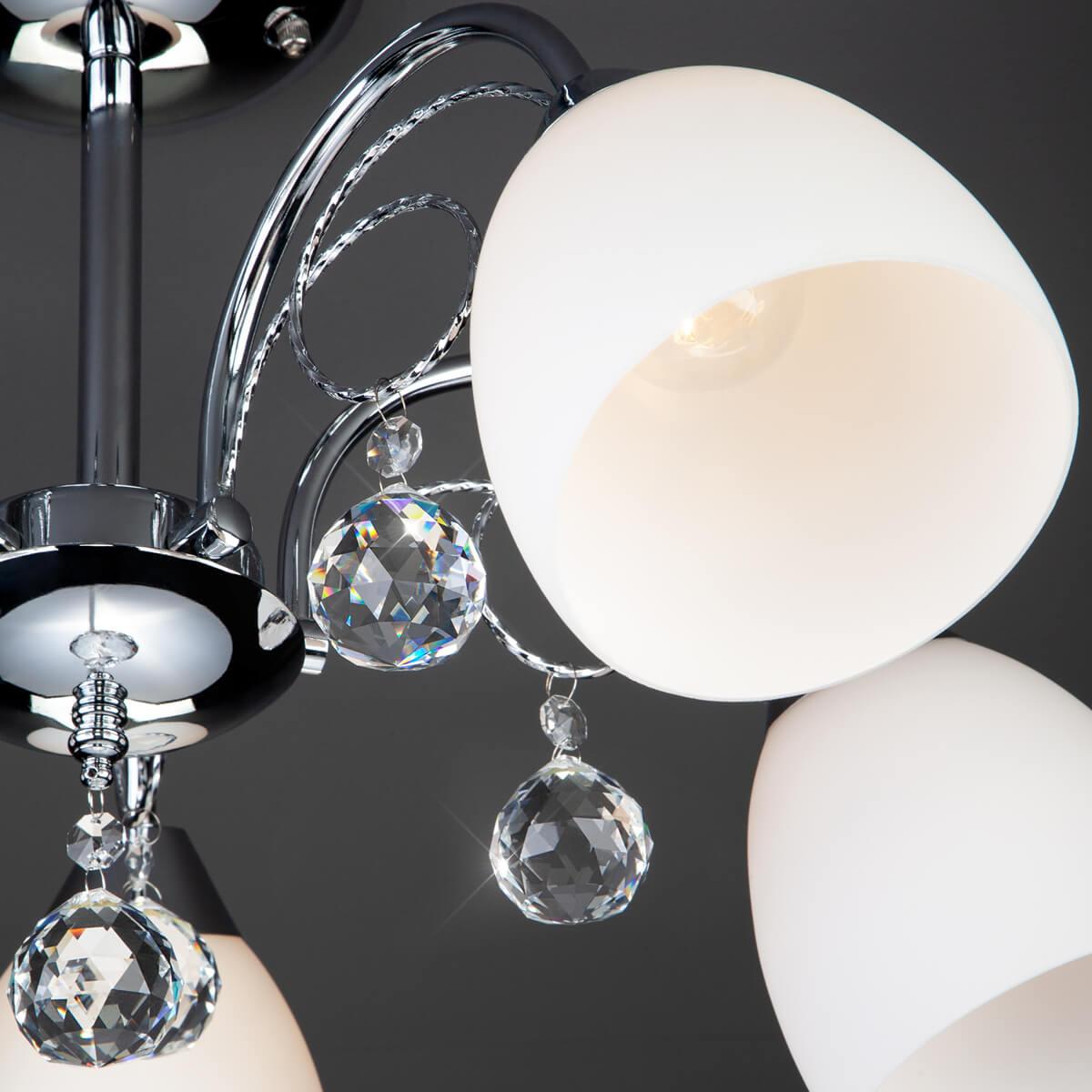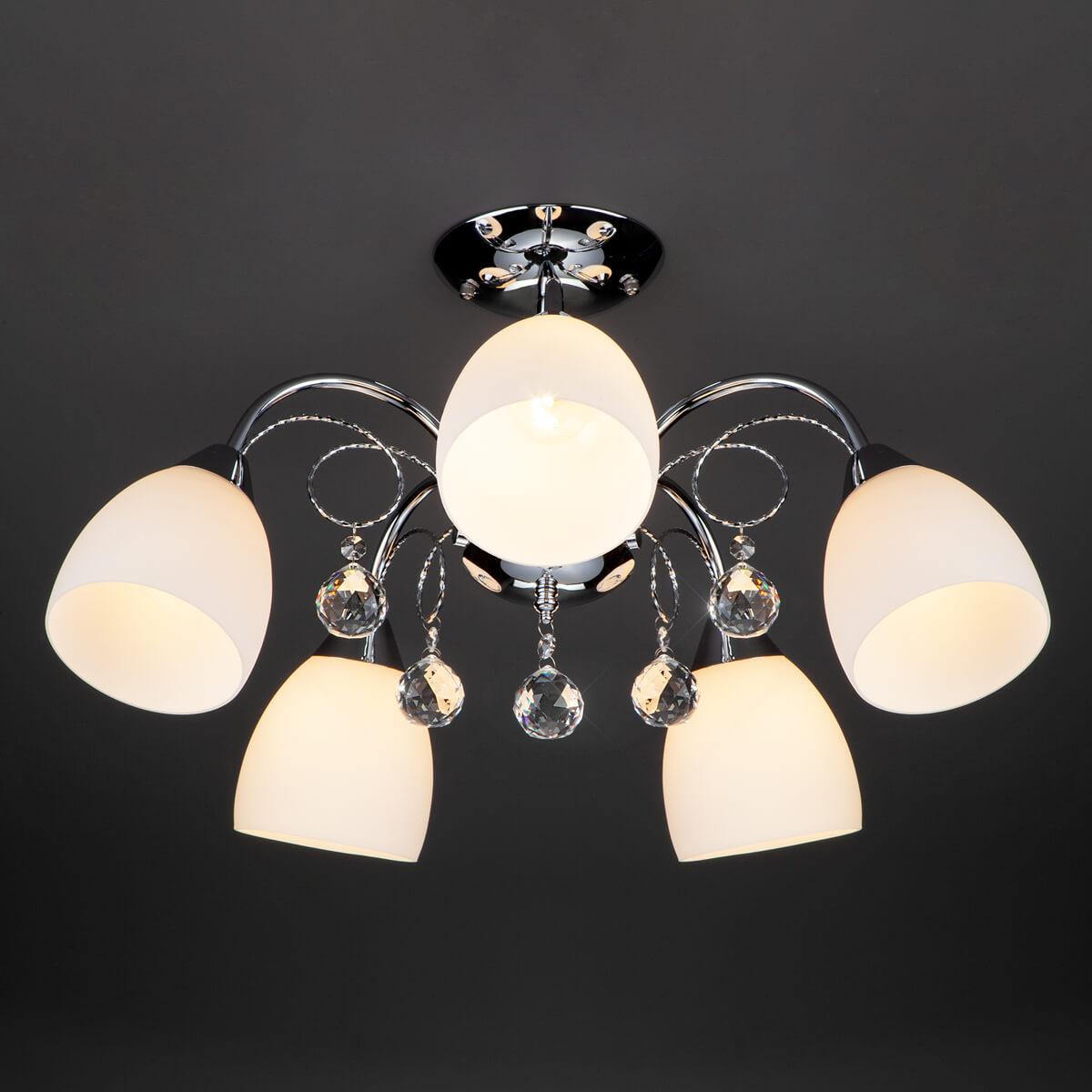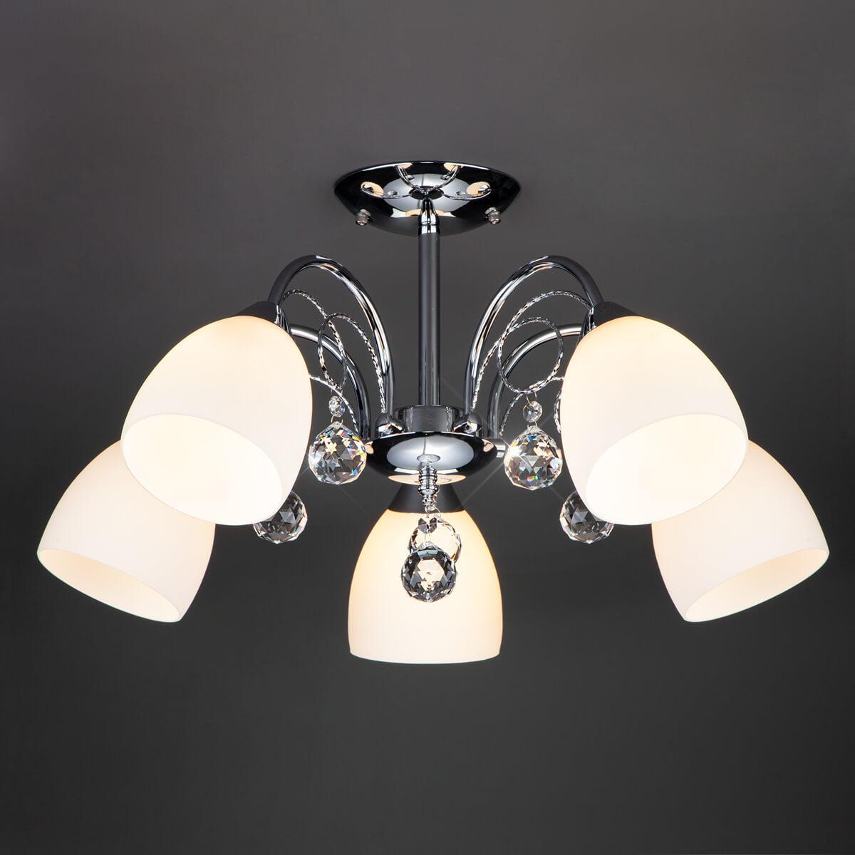 Подвесная люстра Eurosvet 22415/5 хром от Китайского бренда Eurosvet из коллекции 22415 будет удачно смотреться в гостиной в современном стиле. Светильник выполнен из стекла с плафонами в форме овала белого цвета.