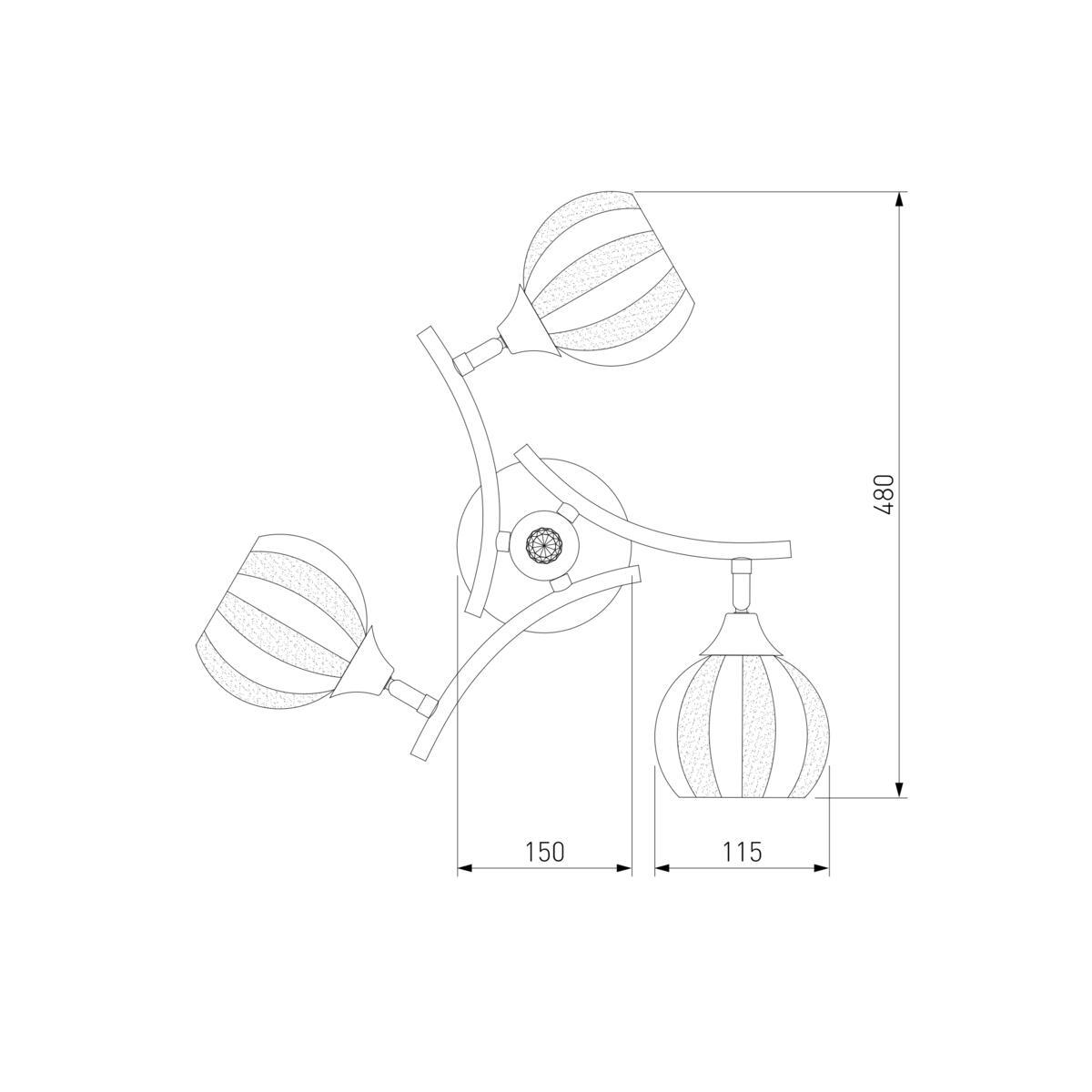 Производитель светильника рекомендует для устройства 3 лампы накаливания с цоколем E27 и мощностью 60 W, что позволит осветить помещение площадью кв.м. Габариты изделия: высота – 290 мм, диаметр – 500 мм.