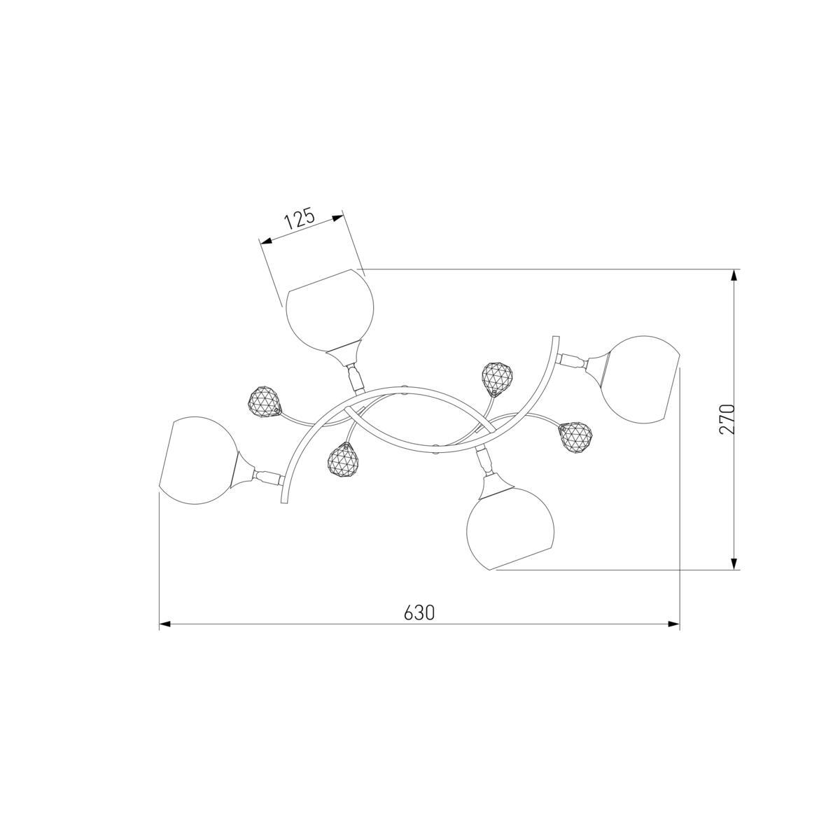 Производитель светильника рекомендует для устройства 4 лампы накаливания с цоколем E27 и мощностью 40 W, что позволит осветить помещение площадью кв.м. Габариты изделия: высота – 290 мм, диаметр – мм.