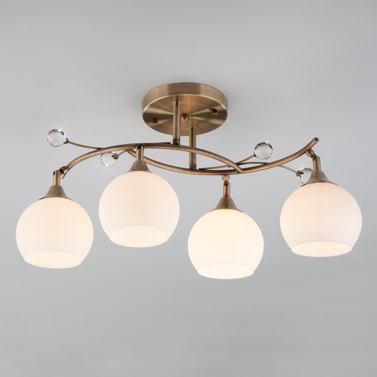 Подвесная люстра Eurosvet 9604/4 античная бронза от Китайского бренда Eurosvet из коллекции 9604 будет удачно смотреться в кухне в современном стиле. Светильник выполнен из стекла с плафонами в форме круга белого цвета.