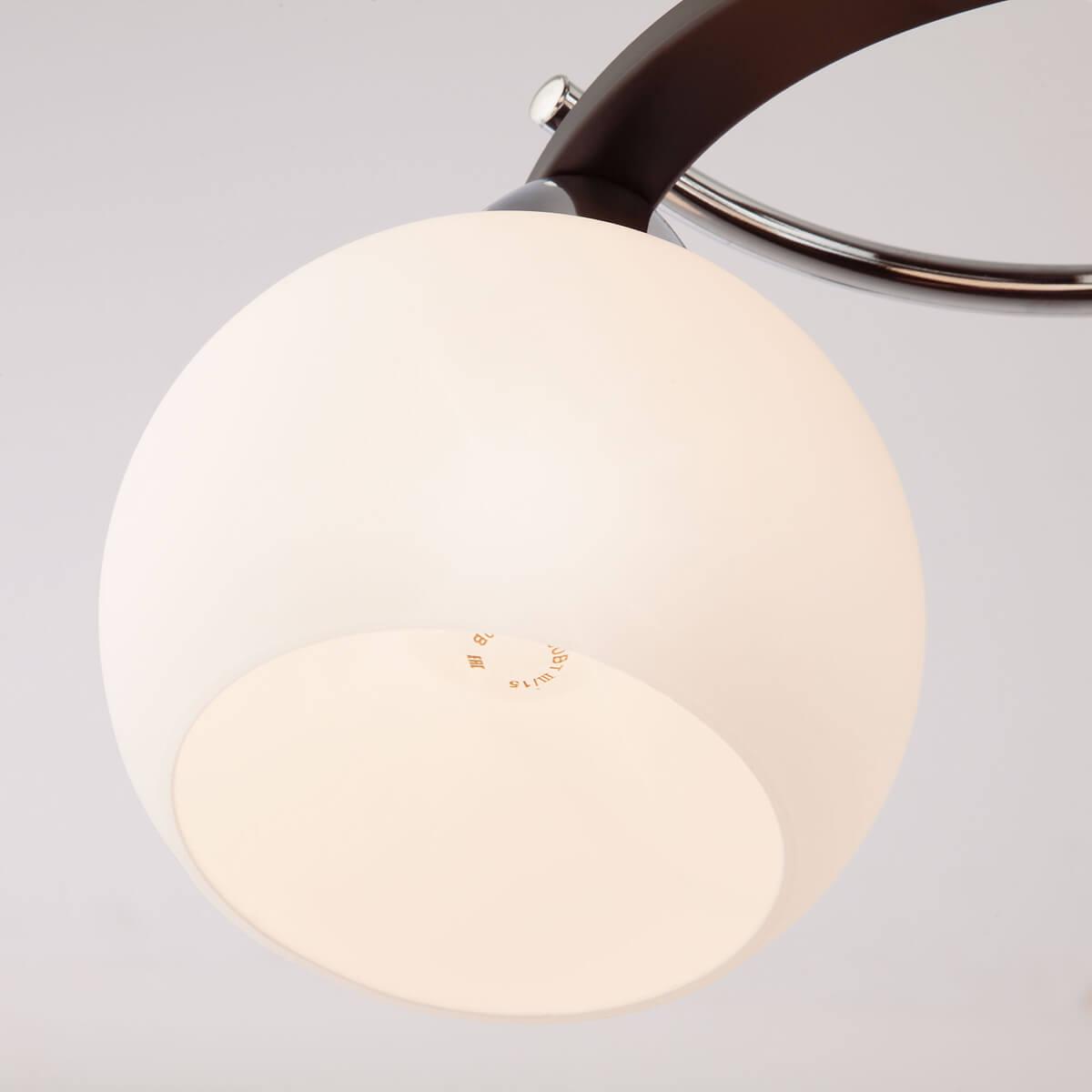 Подвесная люстра Eurosvet 9654/5 хром/венге от Китайского бренда Eurosvet из коллекции 9654 будет удачно смотреться в гостиной в современном стиле. Светильник выполнен из стекла с плафонами в форме круга белого цвета.