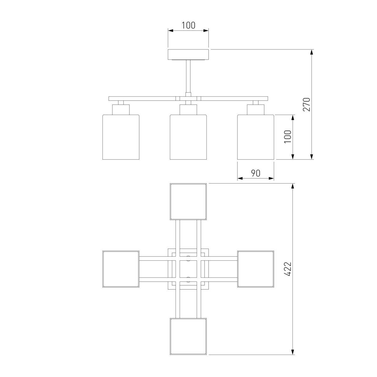 Производитель светильника рекомендует для устройства 4 лампы накаливания с цоколем E14 и мощностью 60 W, что позволит осветить помещение площадью кв.м. Габариты изделия: высота – 280 мм, диаметр – мм.