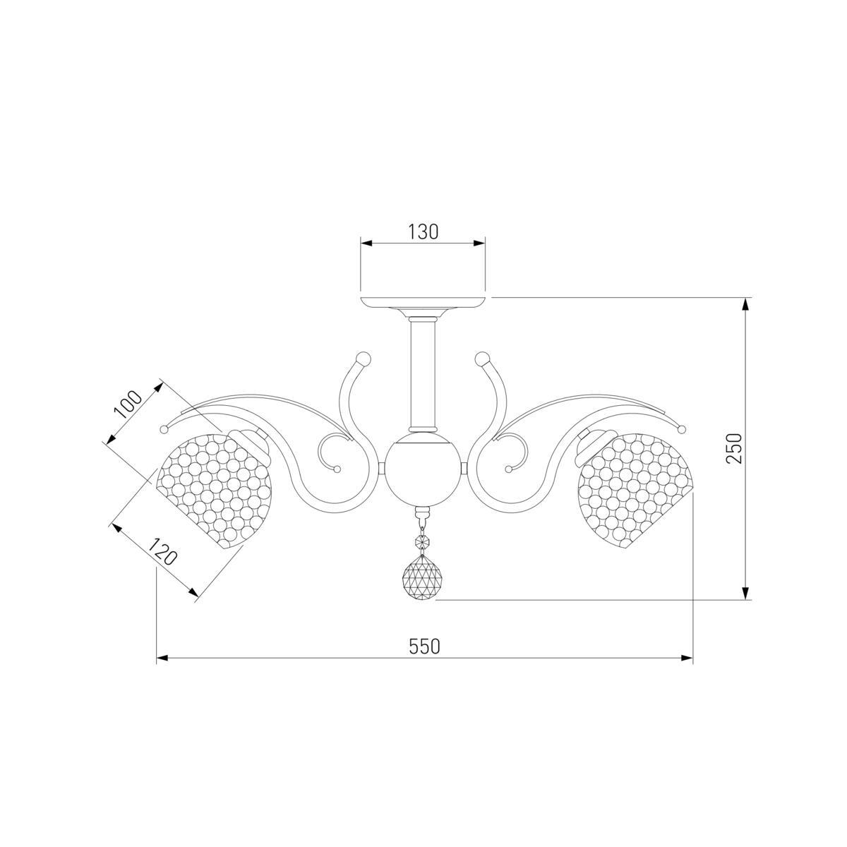Производитель светильника рекомендует для устройства 5 ламп накаливания с цоколем E27 и мощностью 60 W, что позволит осветить помещение площадью кв.м. Габариты изделия: высота – 240 мм, диаметр – 580 мм.