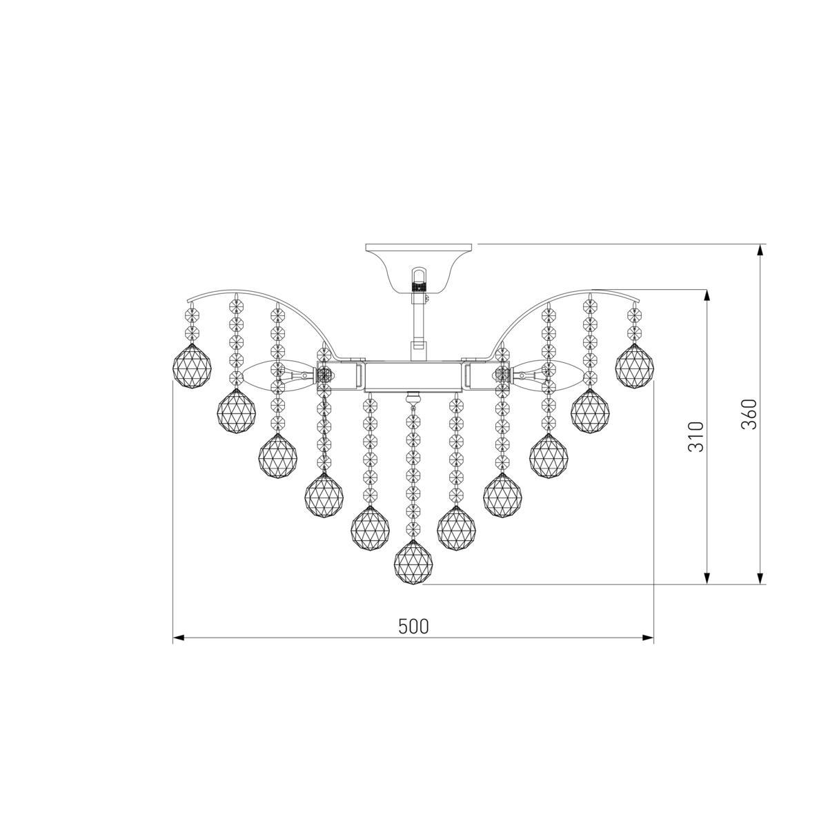 Производитель светильника рекомендует для устройства 6 ламп накаливания с цоколем E14 и мощностью 60 W, что позволит осветить помещение площадью кв.м. Габариты изделия: высота – 370 мм, диаметр – 480 мм.