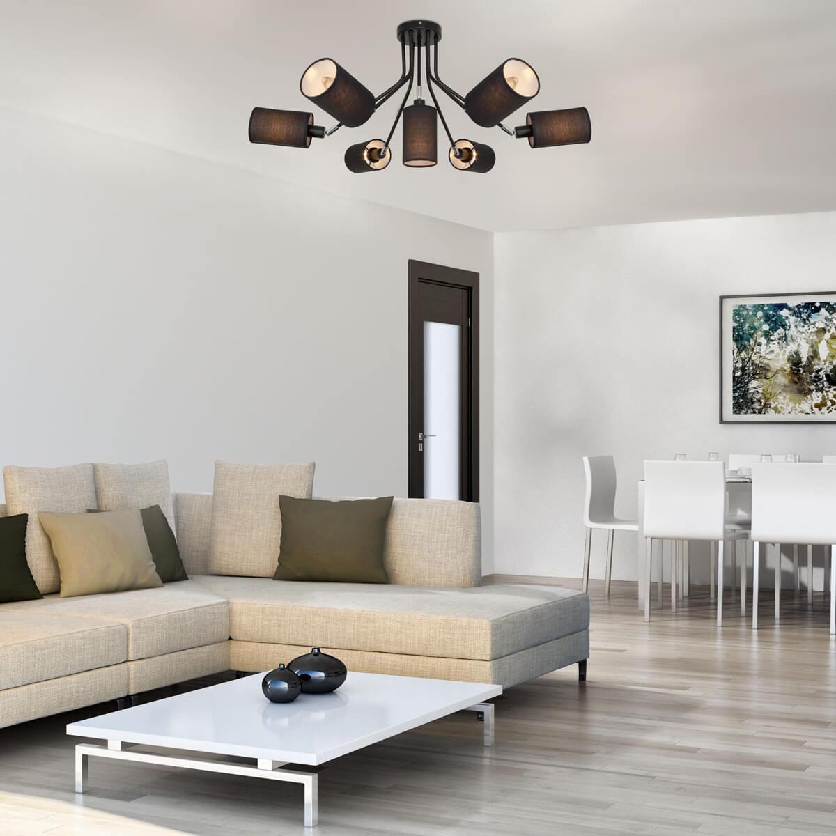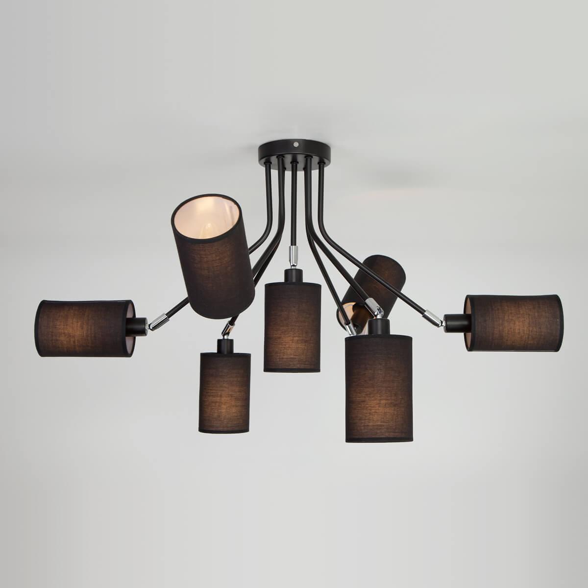 Подвесная люстра Eurosvet 70072/7 черный от Китайского бренда Eurosvet из коллекции Duetto будет удачно смотреться в спальни в современном стиле. Светильник выполнен из ткани с плафонами в форме цилиндра черного цвета.