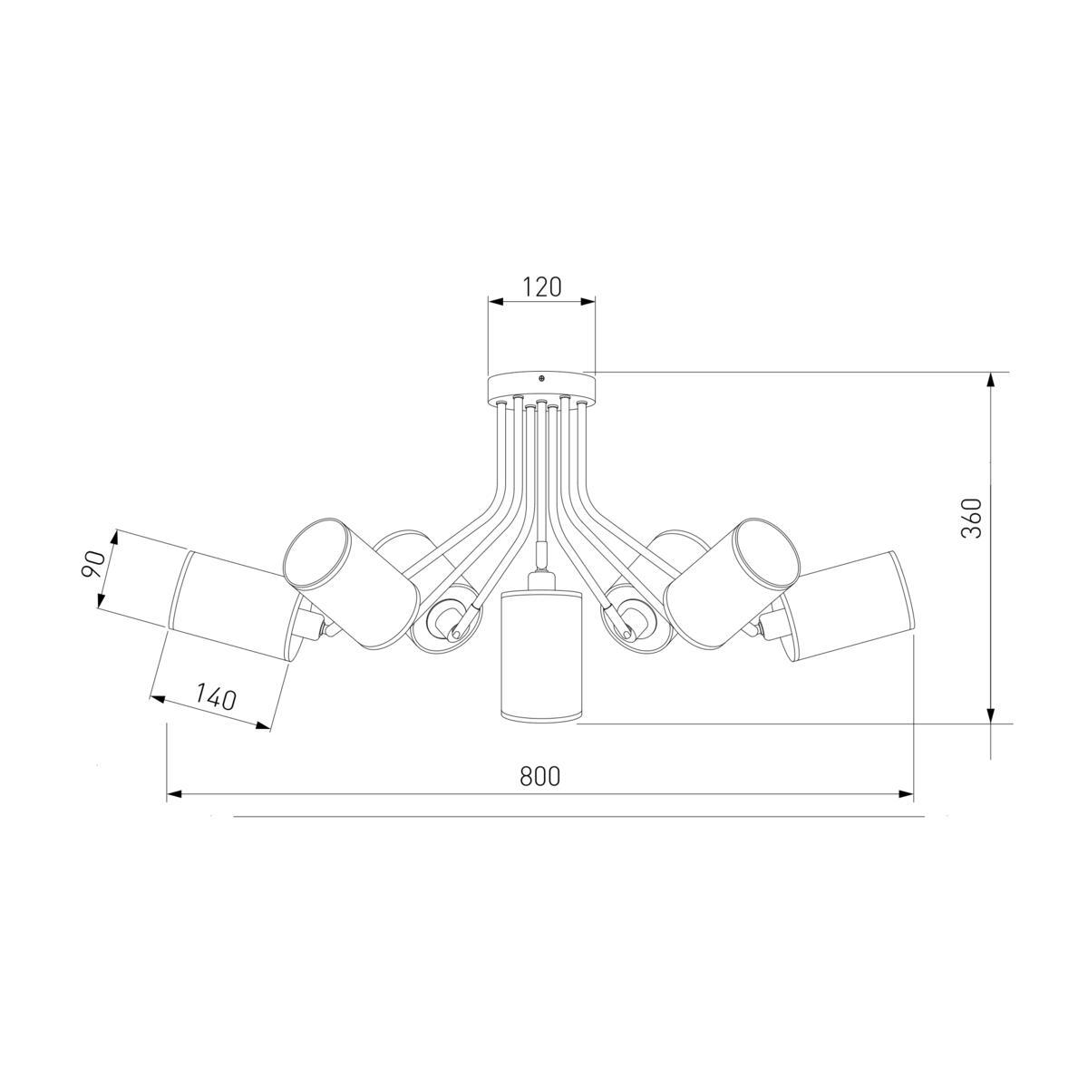 Производитель светильника рекомендует для устройства 7 ламп накаливания с цоколем E14 и мощностью 40 W, что позволит осветить помещение площадью кв.м. Габариты изделия: высота – 370 мм, диаметр – 770 мм.