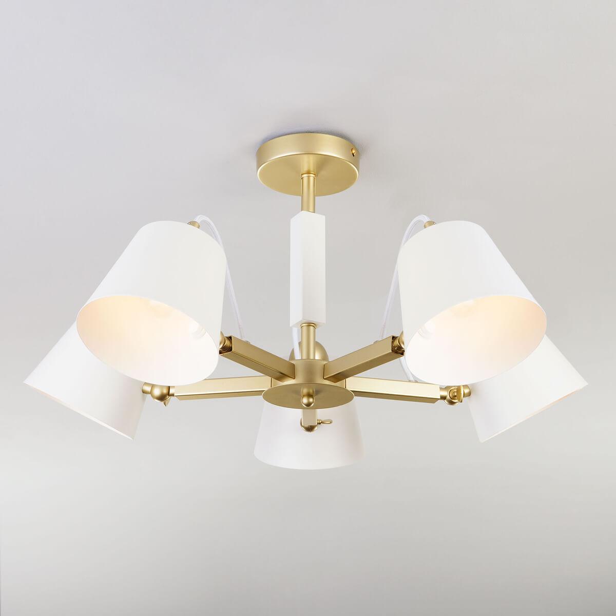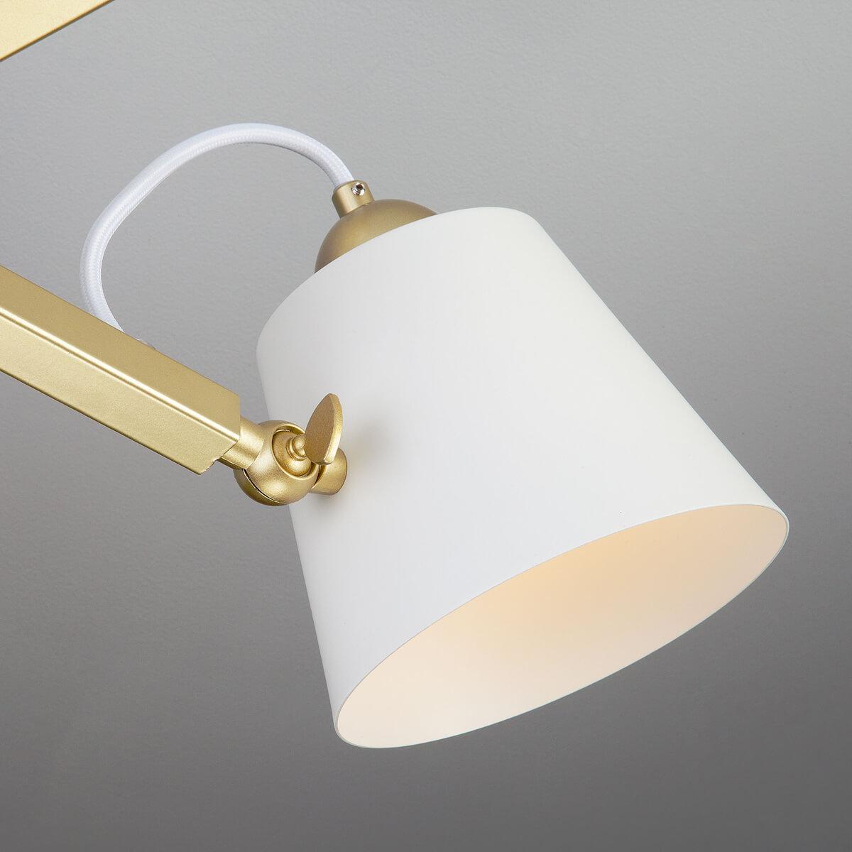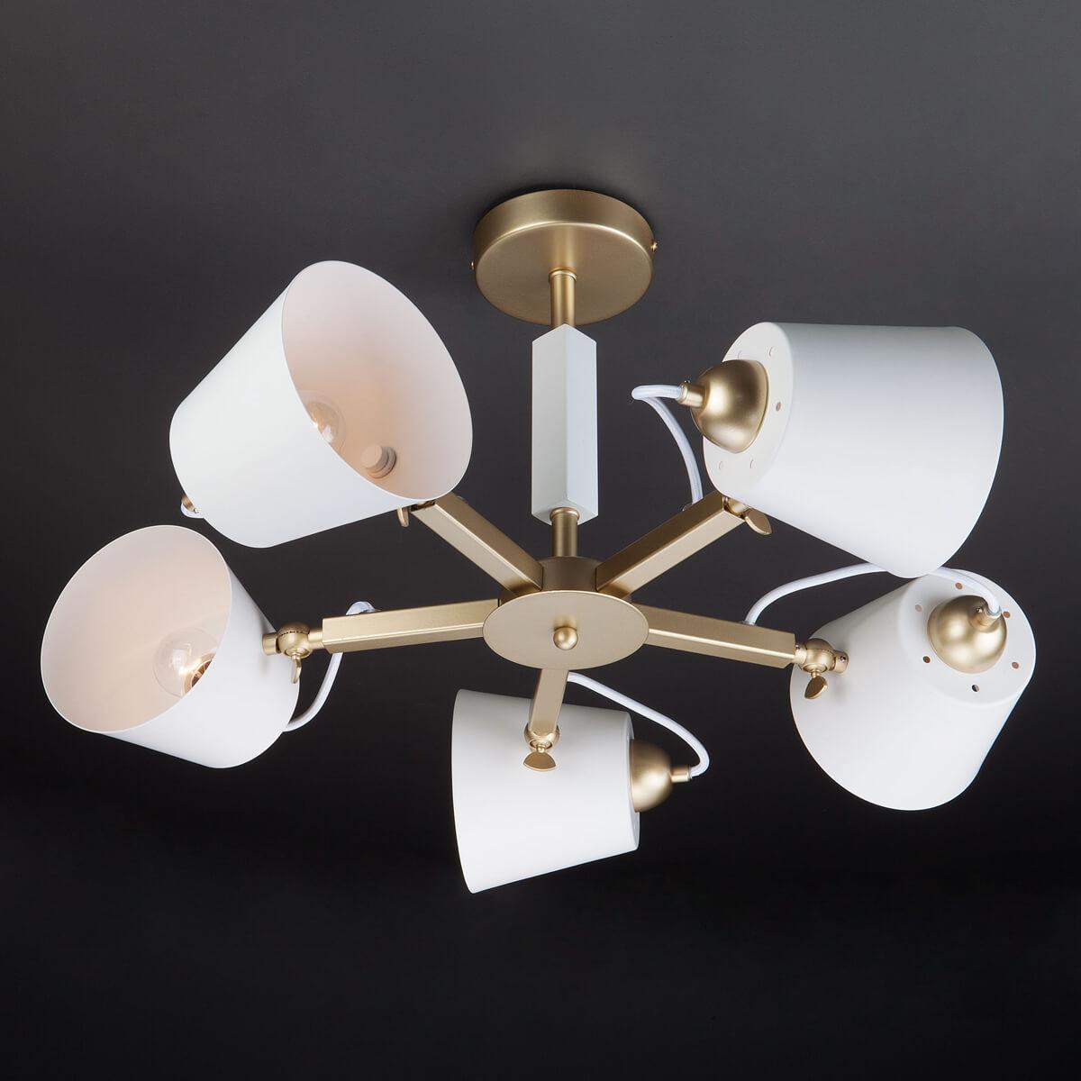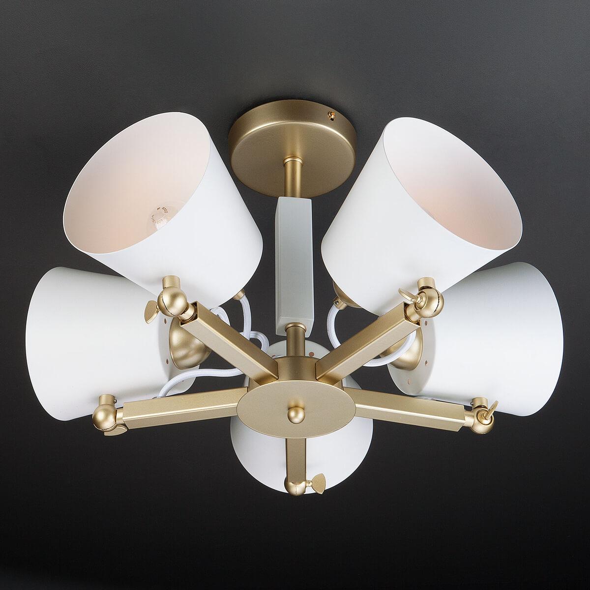 Светильник Eurosvet с поворотными рожками 70083/5 золото от Китайского бренда Eurosvet из коллекции Frozen будет удачно смотреться в спальни в скандинавском стиле. Светильник выполнен из металла с плафонами в форме конуса белого цвета.
