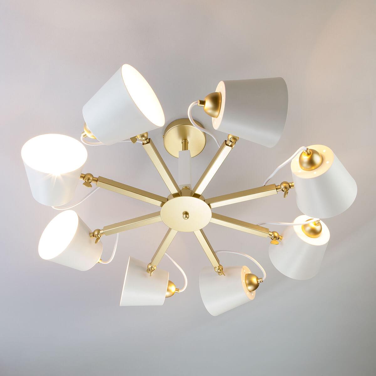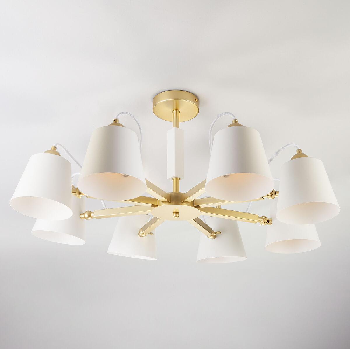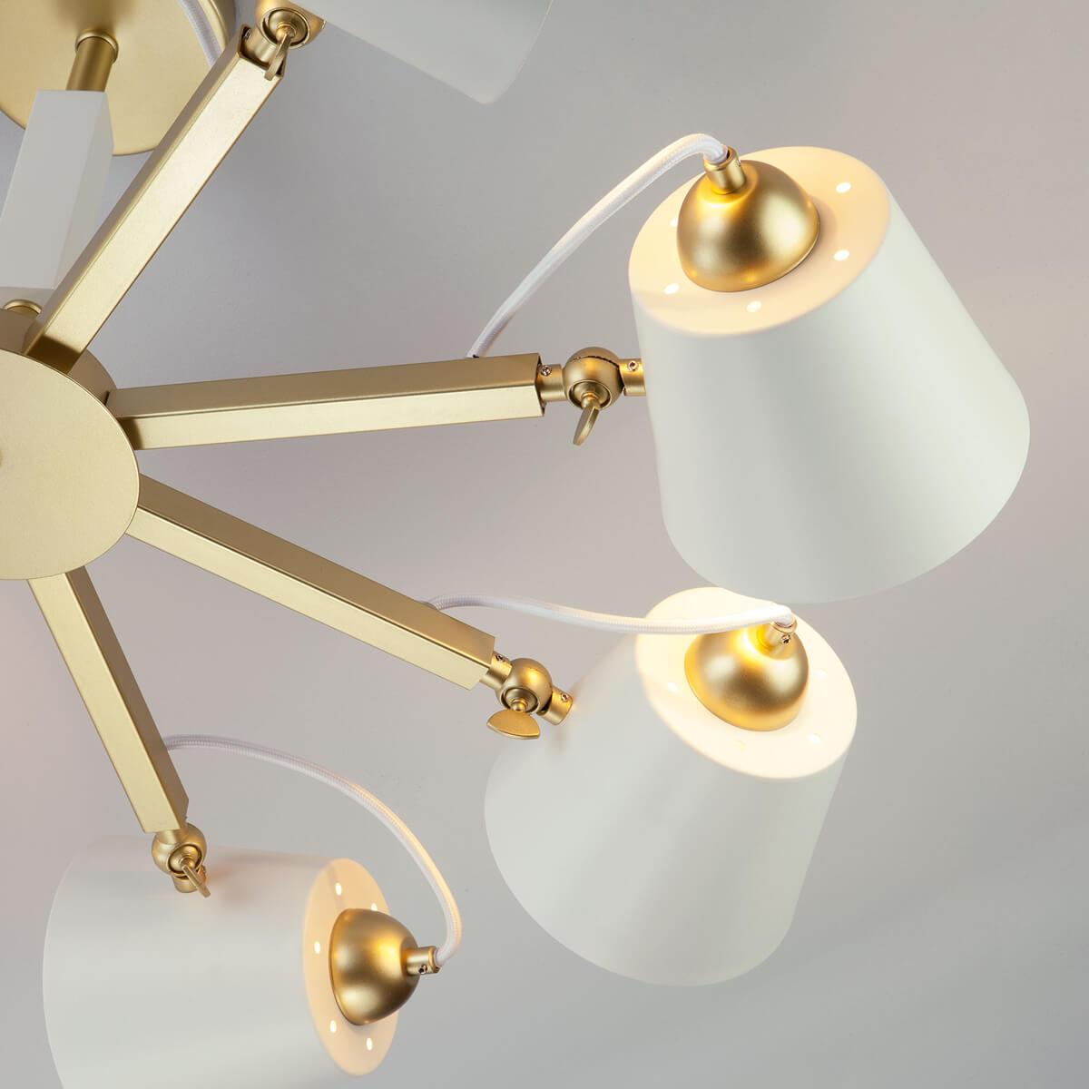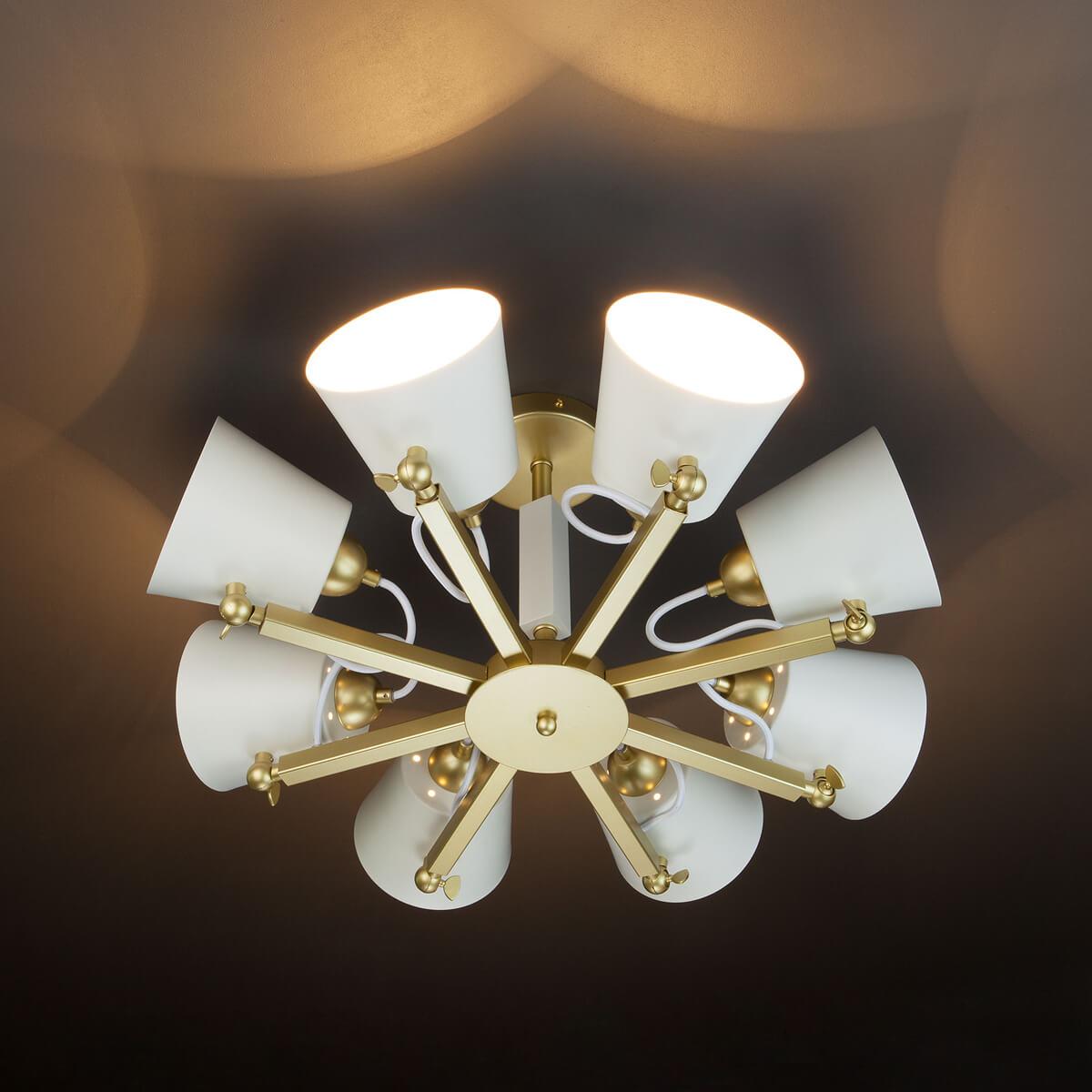 Светильник Eurosvet с поворотными рожками 70083/8 золото от Китайского бренда Eurosvet из коллекции Frozen будет удачно смотреться в гостиной в скандинавском стиле. Светильник выполнен из металла с плафонами в форме конуса белого цвета.