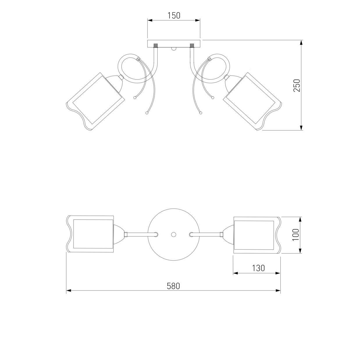 Производитель светильника рекомендует для устройства 2 лампы накаливания с цоколем E27 и мощностью 60 W, что позволит осветить помещение площадью кв.м. Габариты изделия: высота – 260 мм, диаметр – мм.