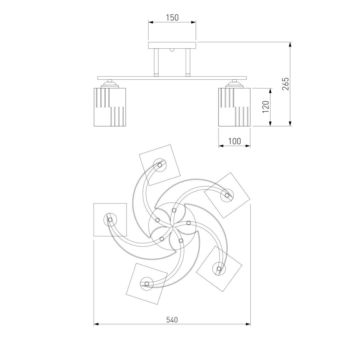 Производитель светильника рекомендует для устройства 5 ламп накаливания с цоколем E27 и мощностью 60 W, что позволит осветить помещение площадью кв.м. Габариты изделия: высота – 290 мм, диаметр – 470 мм.
