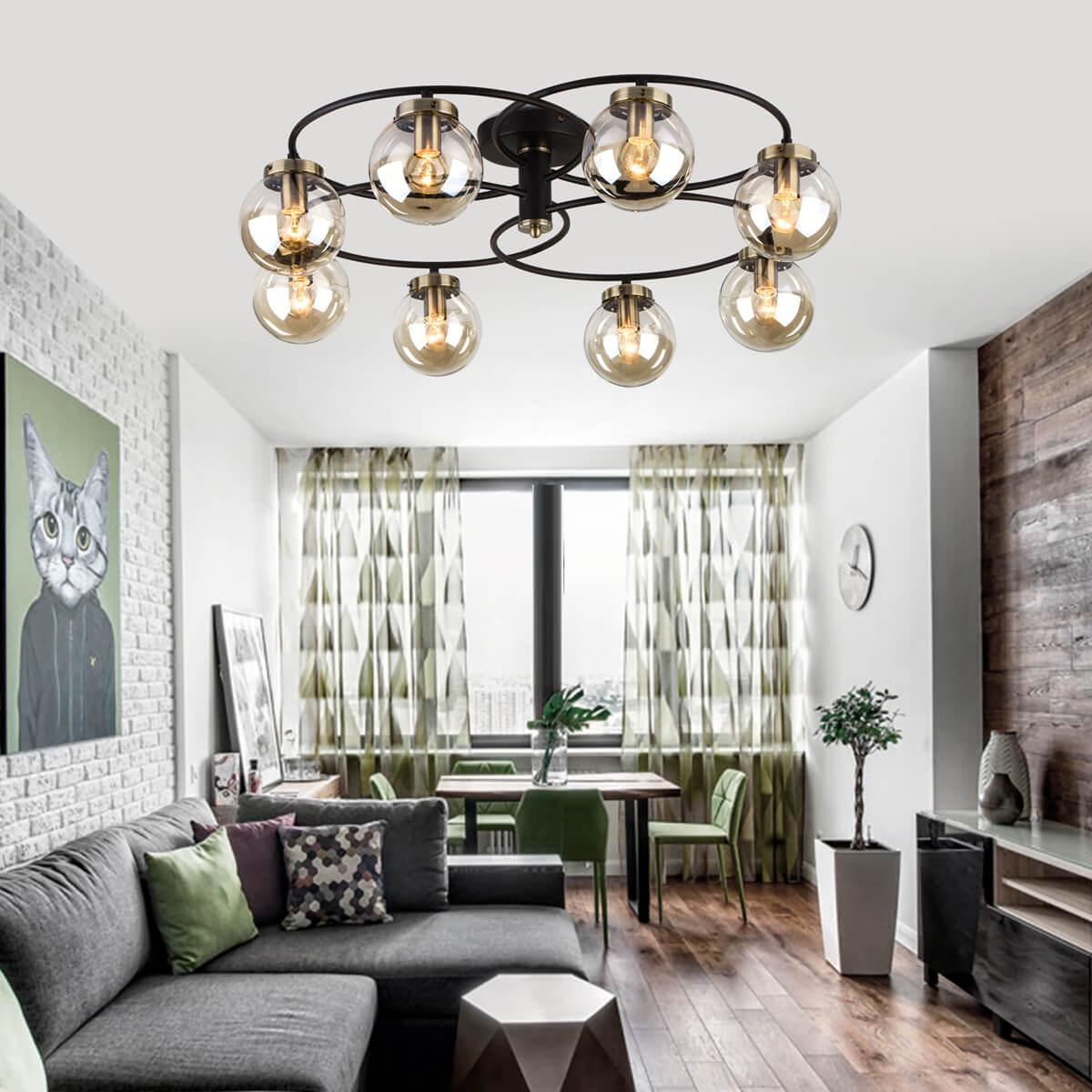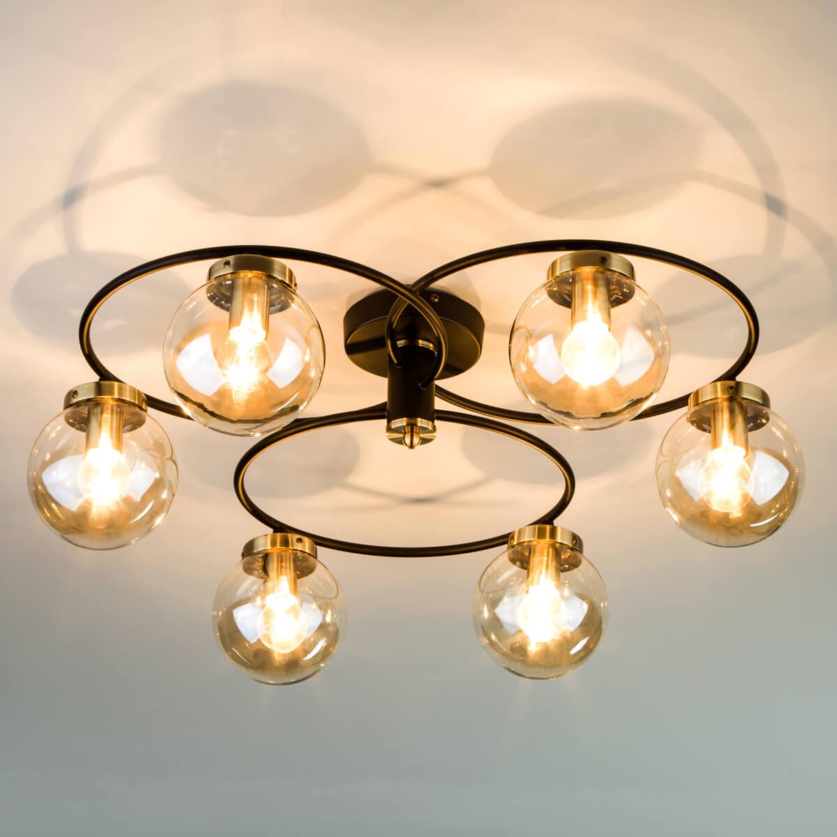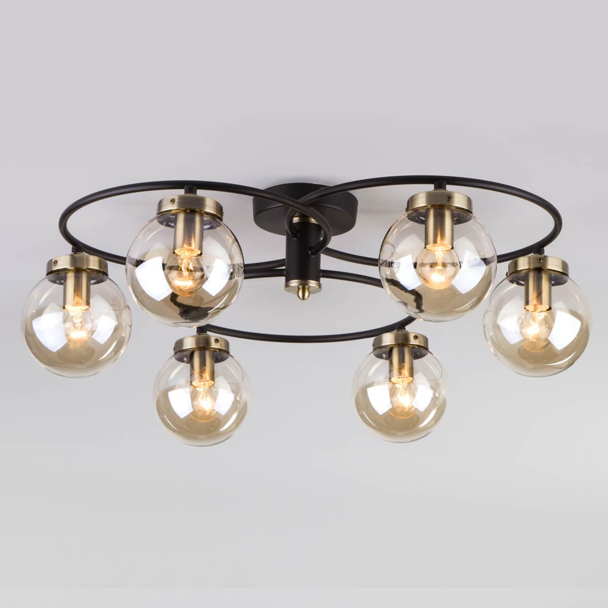 Потолочная люстра Eurosvet 70104/6 черный от Китайского бренда Eurosvet из коллекции Link будет удачно смотреться в спальни в современном стиле. Светильник выполнен из стекла с плафонами в форме круга янтарного цвета.