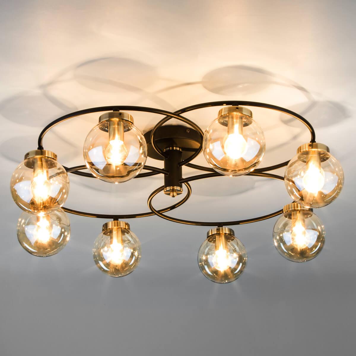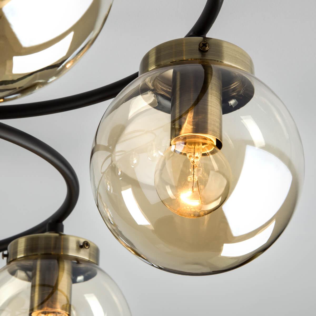 Потолочная люстра Eurosvet 70104/8 черный от Китайского бренда Eurosvet из коллекции Link будет удачно смотреться в спальни в современном стиле. Светильник выполнен из стекла с плафонами в форме круга янтарного цвета.