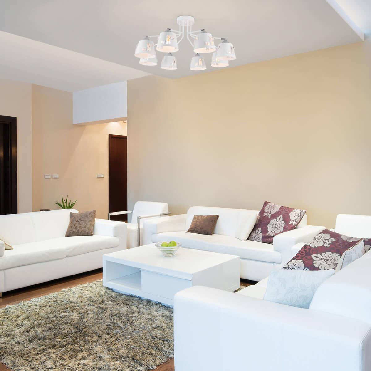 Потолочная люстра Eurosvet Benna 70105/8 белый от Китайского бренда Eurosvet из коллекции Benna будет удачно смотреться в гостиной в стиле модерн. Светильник выполнен из металла с плафонами в форме конуса белого цвета.