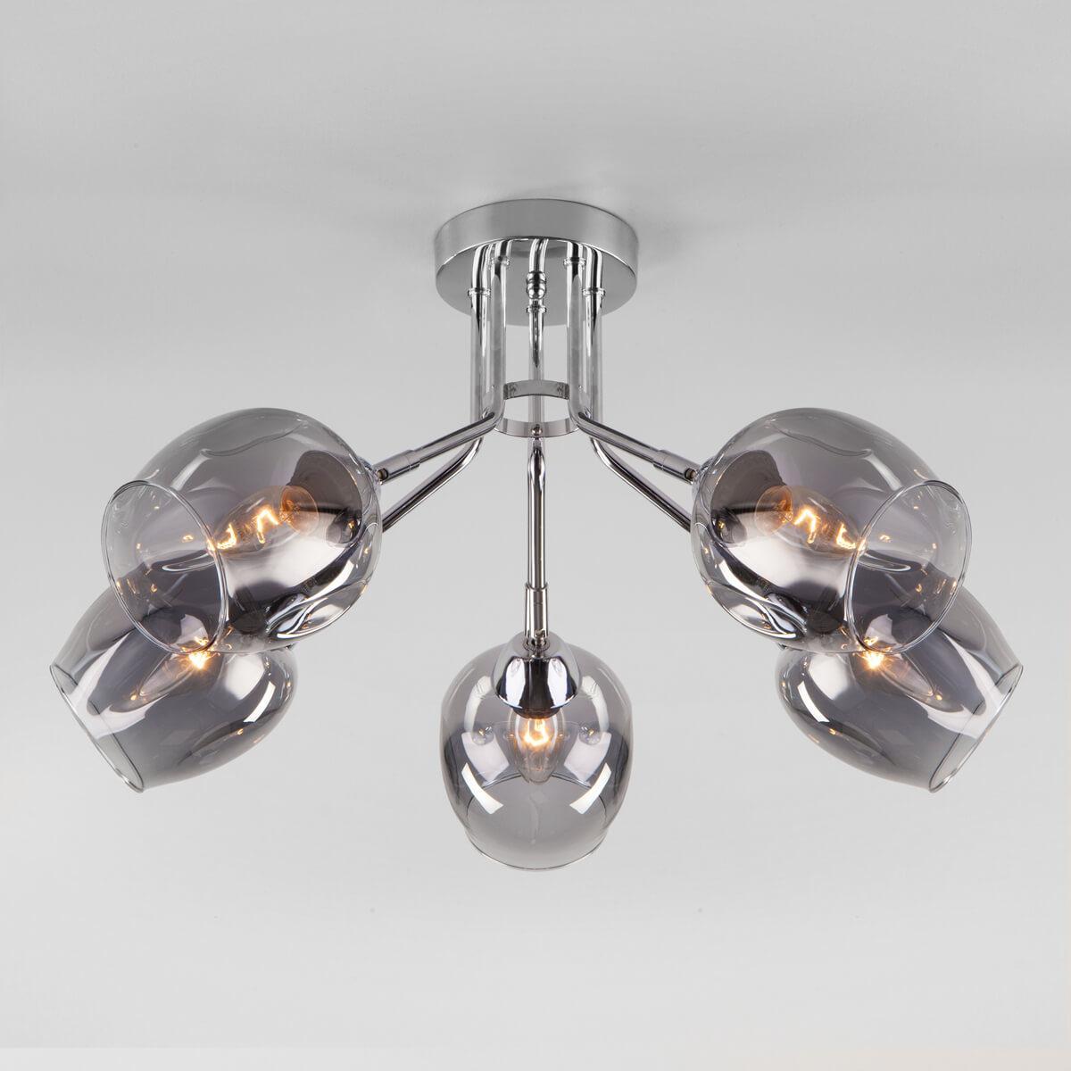 Потолочная люстра Eurosvet Marci 30164/5 хром от Китайского бренда Eurosvet из коллекции Marci будет удачно смотреться в спальни в современном стиле. Светильник выполнен из стекла с плафонами в форме овала дымчатого цвета.