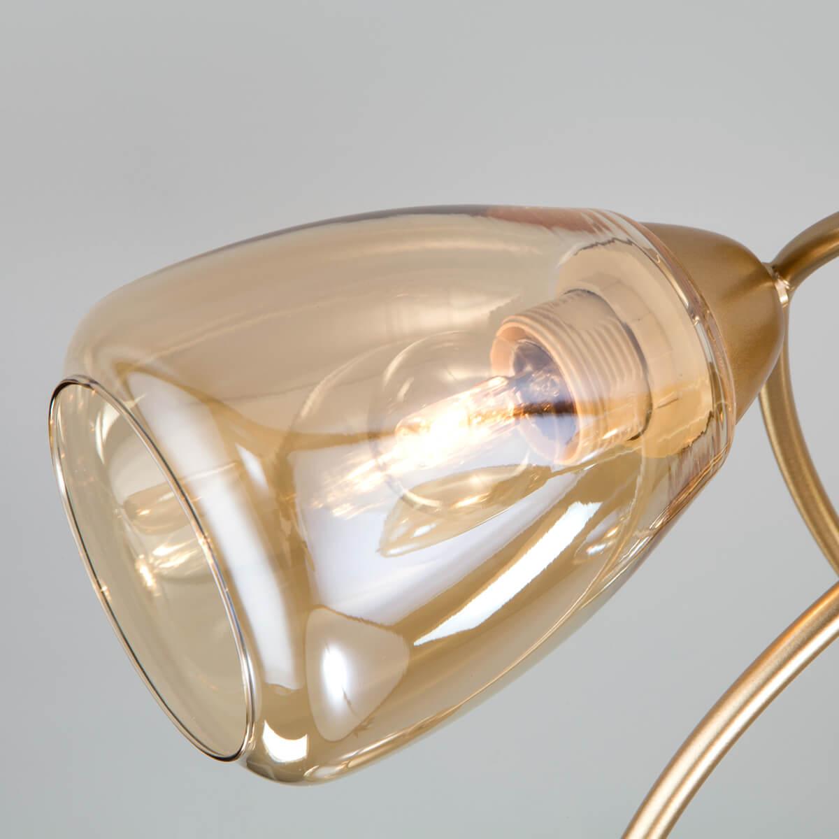 Потолочная люстра Eurosvet Noemi 30168/6 матовое золото от Китайского бренда Eurosvet из коллекции Noemi будет удачно смотреться в гостиной в современном стиле. Светильник выполнен из стекла с плафонами в форме конуса янтарного цвета.