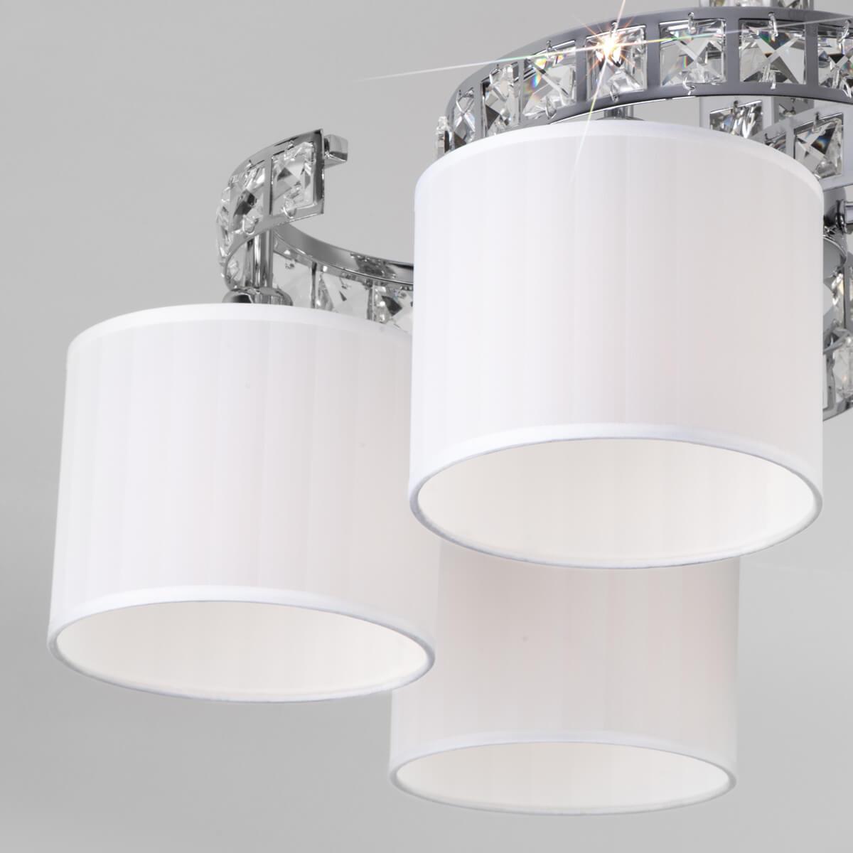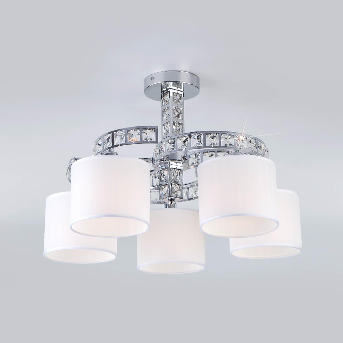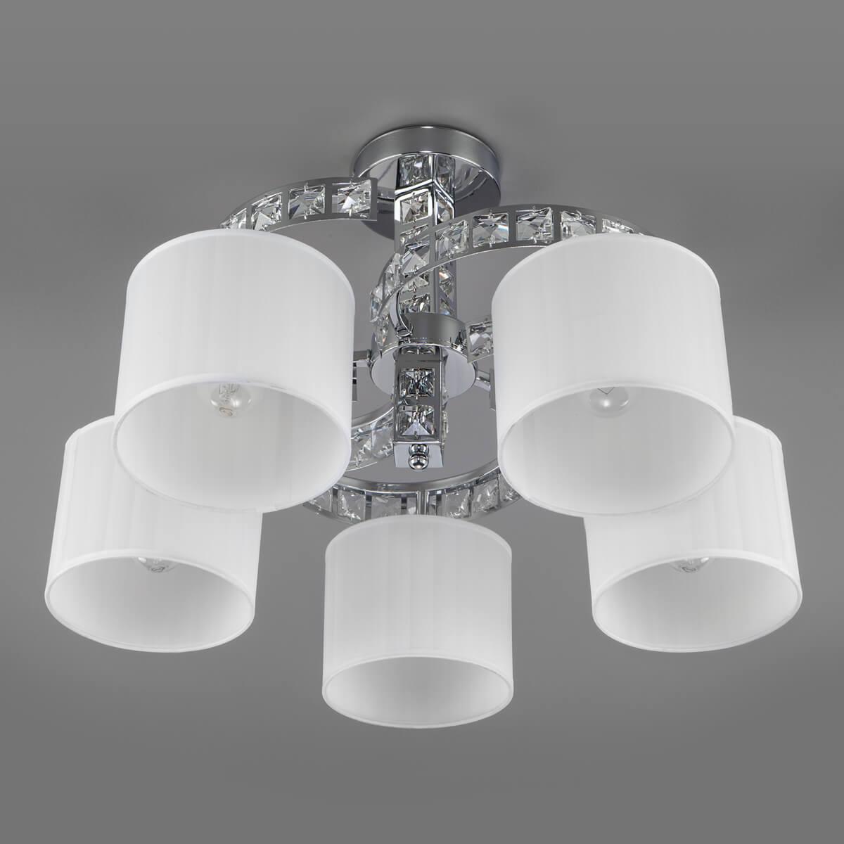 Потолочная люстра Eurosvet Salina 60104/5 хром от Китайского бренда Eurosvet из коллекции Salina будет удачно смотреться в спальни в стиле модерн. Светильник выполнен из ткани с плафонами в форме цилиндра белого цвета.