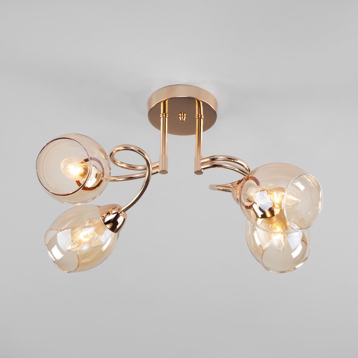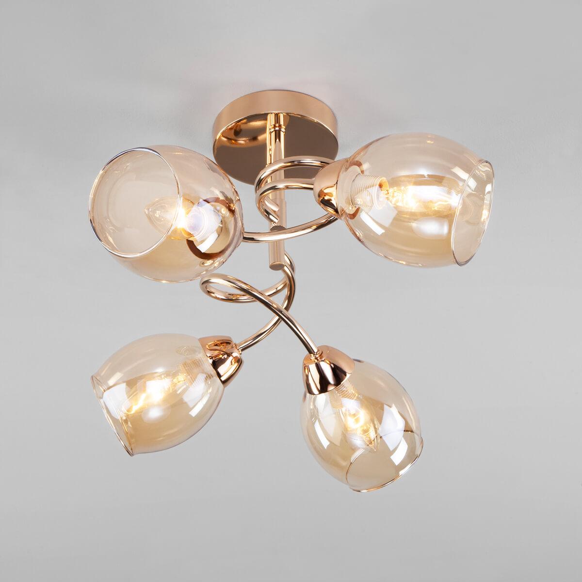 Потолочная люстра Eurosvet Roselyn 30171/4 золото от Китайского бренда Eurosvet из коллекции Roselyn будет удачно смотреться в кухне в стиле модерн. Светильник выполнен из стекла с плафонами в форме овала янтарного цвета.