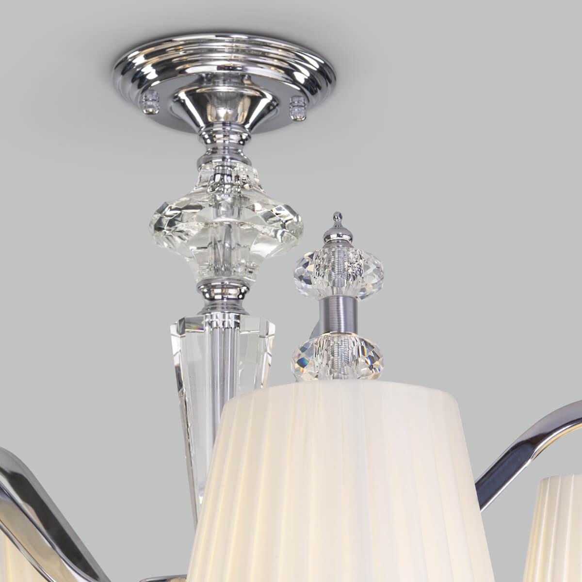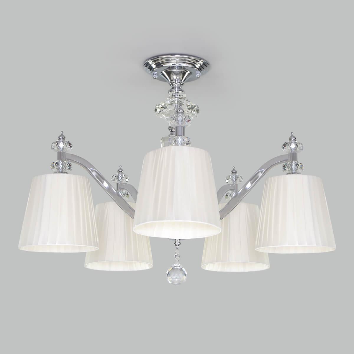 Потолочная люстра Eurosvet Diva 60122/5 хром от Китайского бренда Eurosvet из коллекции Diva будет удачно смотреться в спальни в классиком стиле. Светильник выполнен из ткани с плафонами в форме конуса белого цвета.