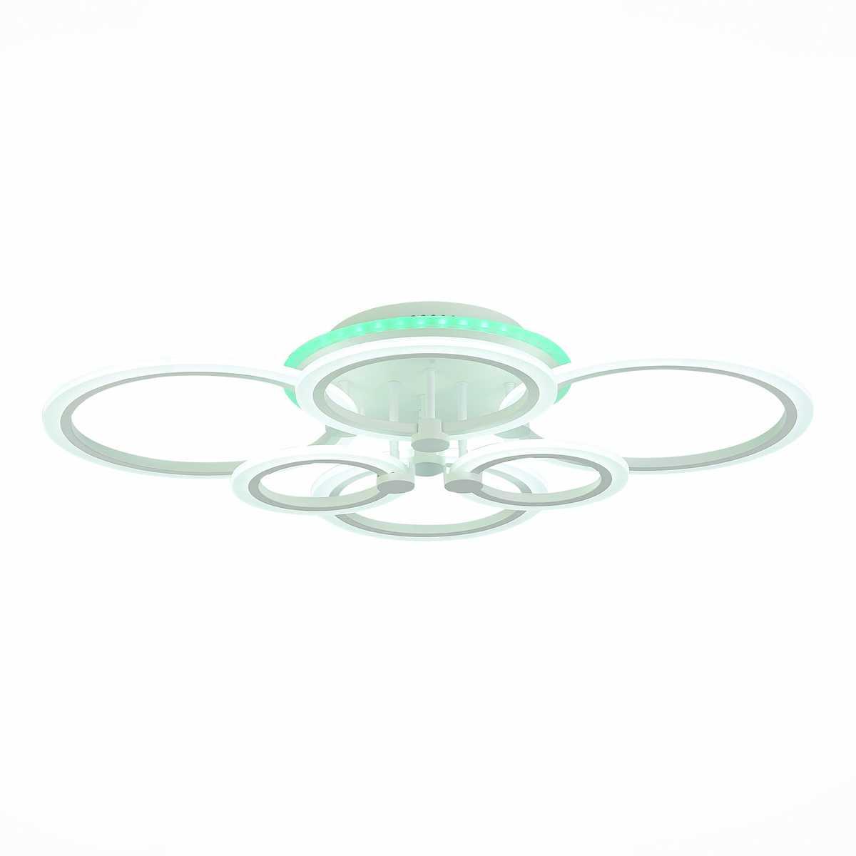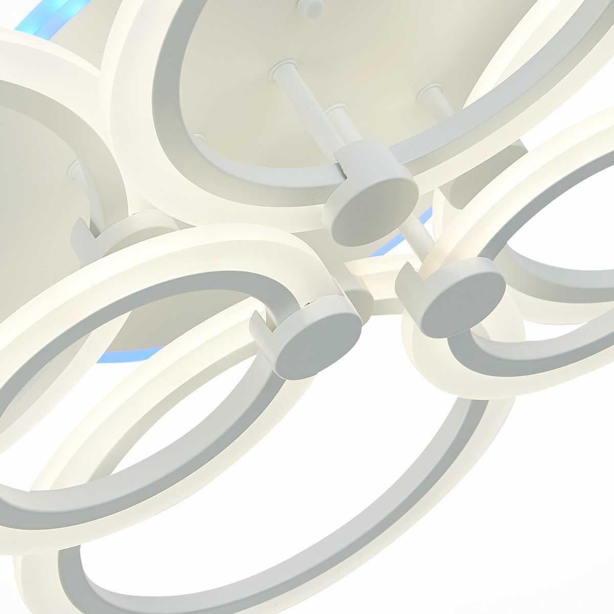 Потолочная светодиодная люстра Evoled Cerina SLE500552-06RGB от бренда Evoled из коллекции Cerina будет удачно смотреться в гостиной в хай-тек стиле. Светильник выполнен из акрила с плафонами в форме круга белого цвета.