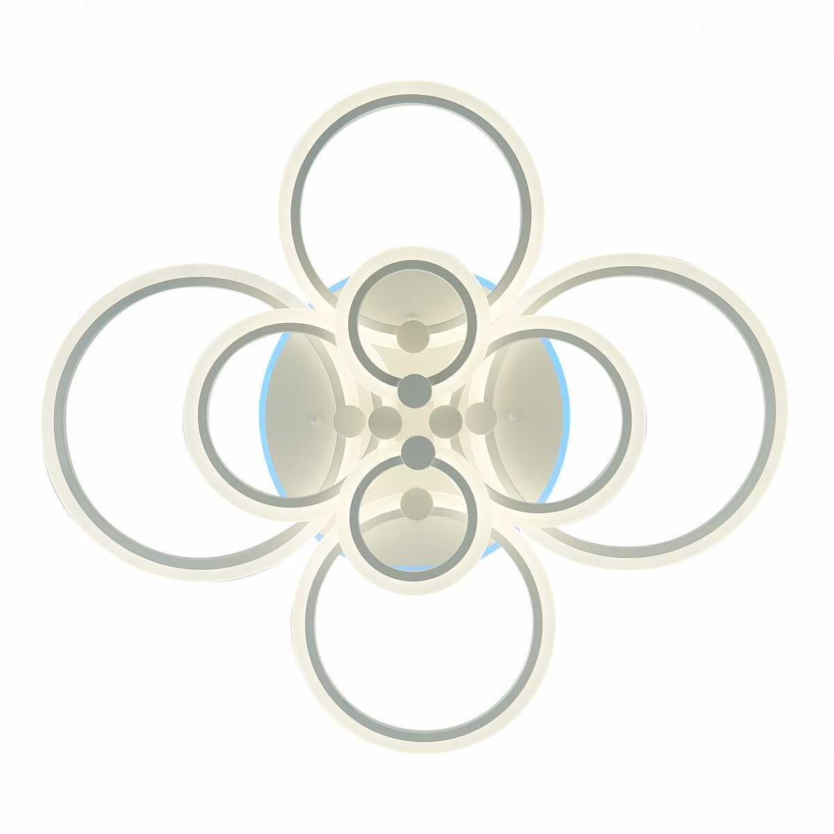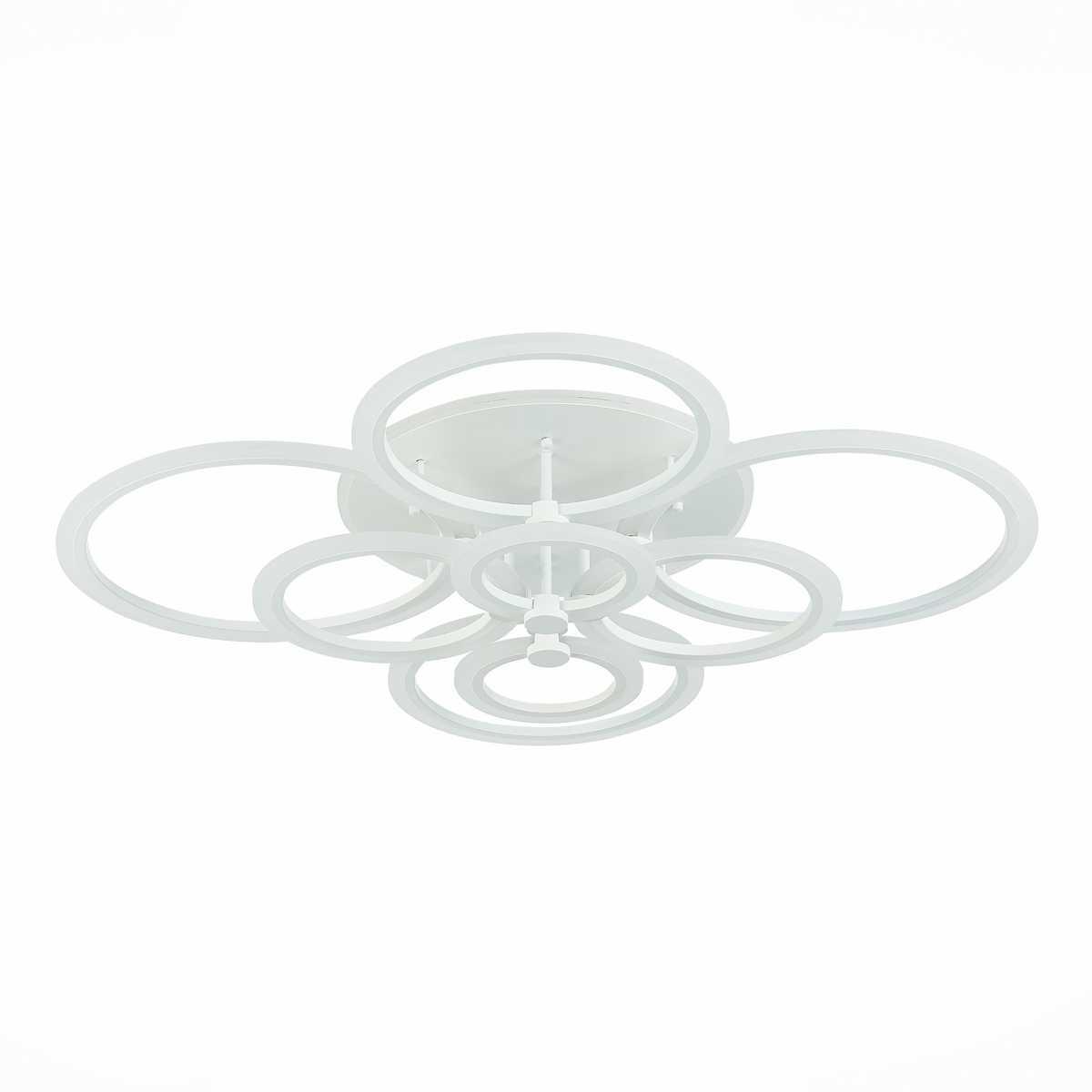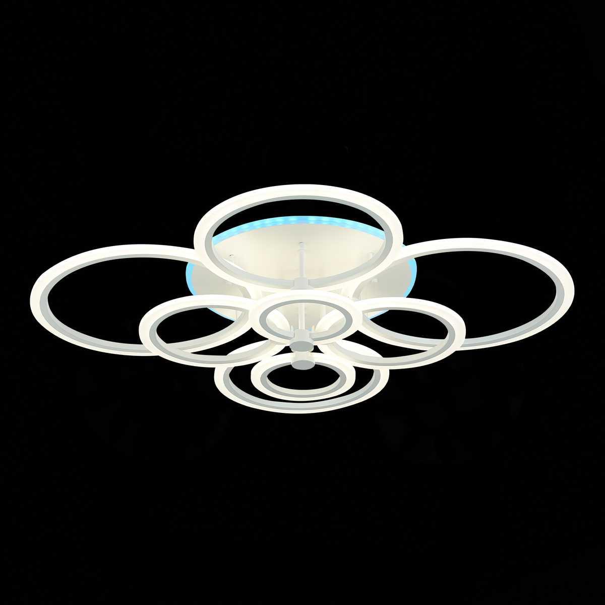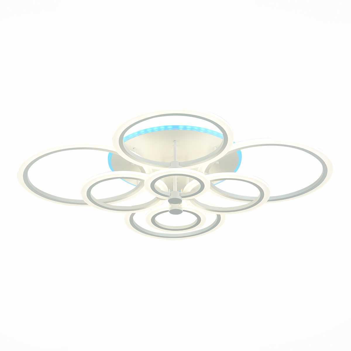 Потолочная светодиодная люстра Evoled Cerina SLE500552-08RGB от бренда Evoled из коллекции Cerina будет удачно смотреться в гостиной в хай-тек стиле. Светильник выполнен из акрила с плафонами в форме круга белого цвета.