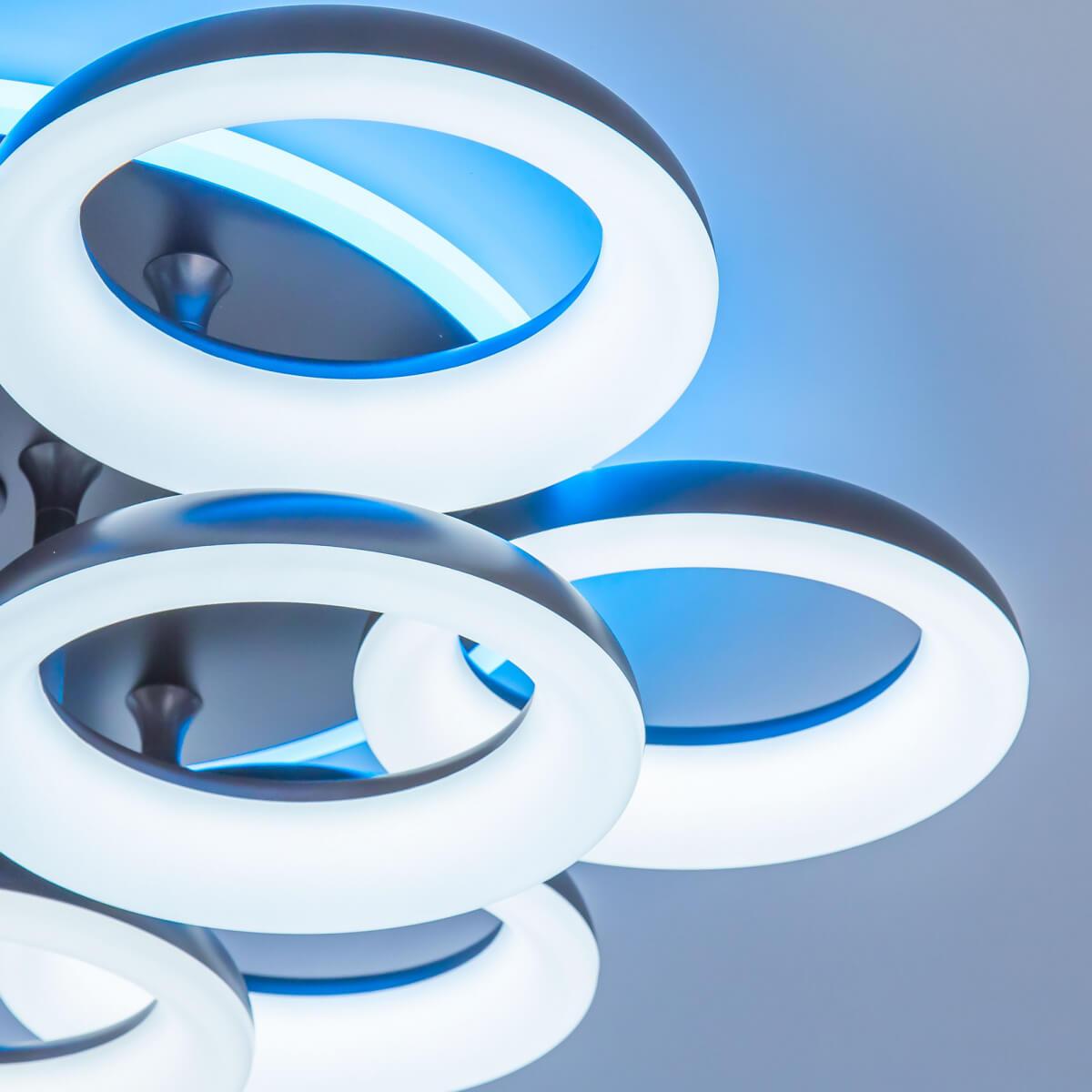 Потолочная светодиодная люстра Citilux Паркер Смарт CL225A195E от Китайского бренда Citilux из коллекции Паркер Смарт будет удачно смотреться в гостиной в современном стиле. Светильник выполнен из полимера с плафонами в форме круга белого цвета.