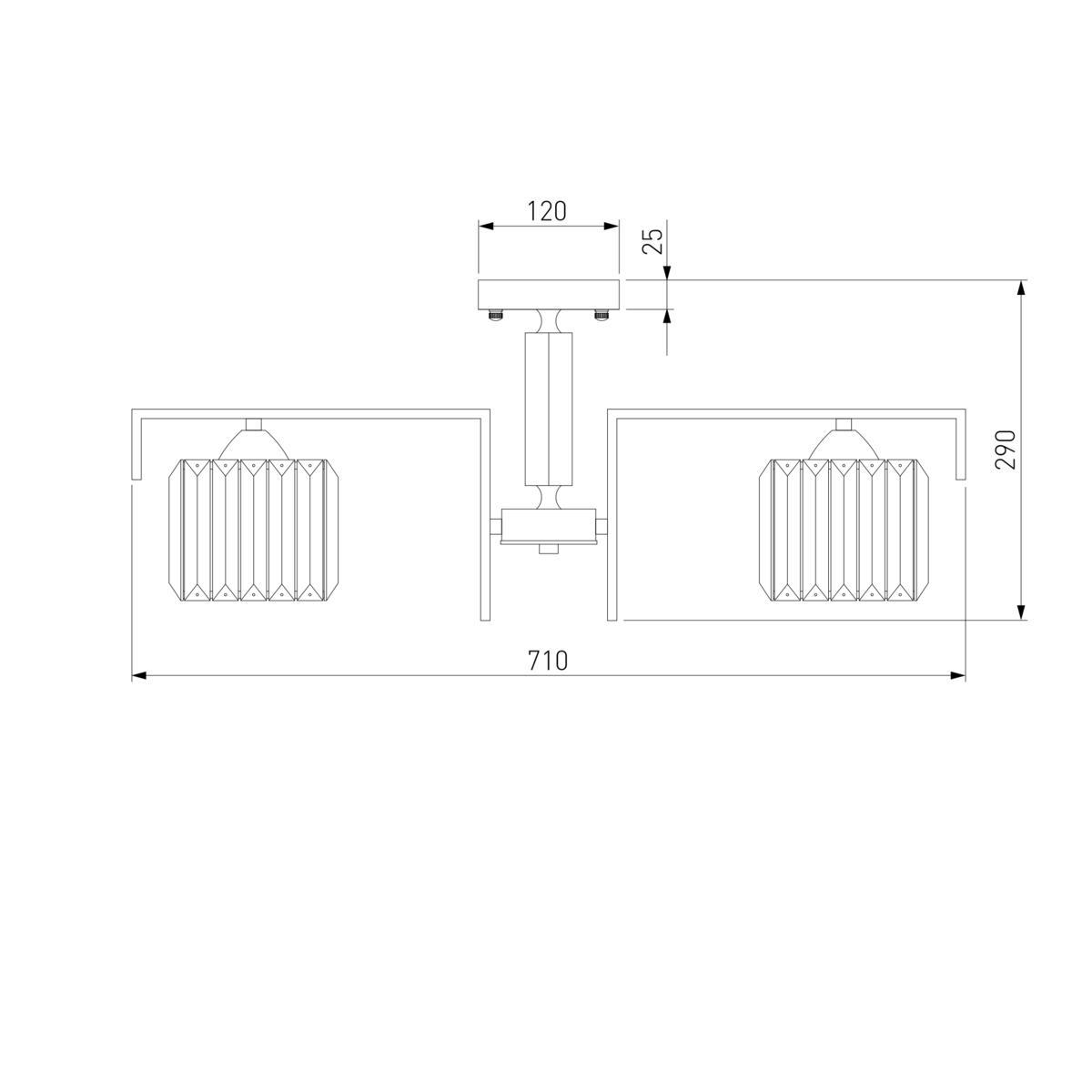 Производитель светильника рекомендует для устройства 5 ламп накаливания с цоколем E14 и мощностью 60 W, что позволит осветить помещение площадью 16,7 кв.м. Габариты изделия: высота – 300 мм, диаметр – 730 мм.