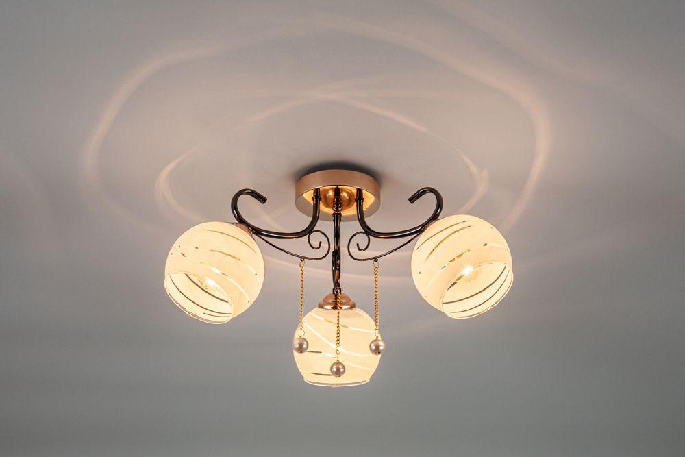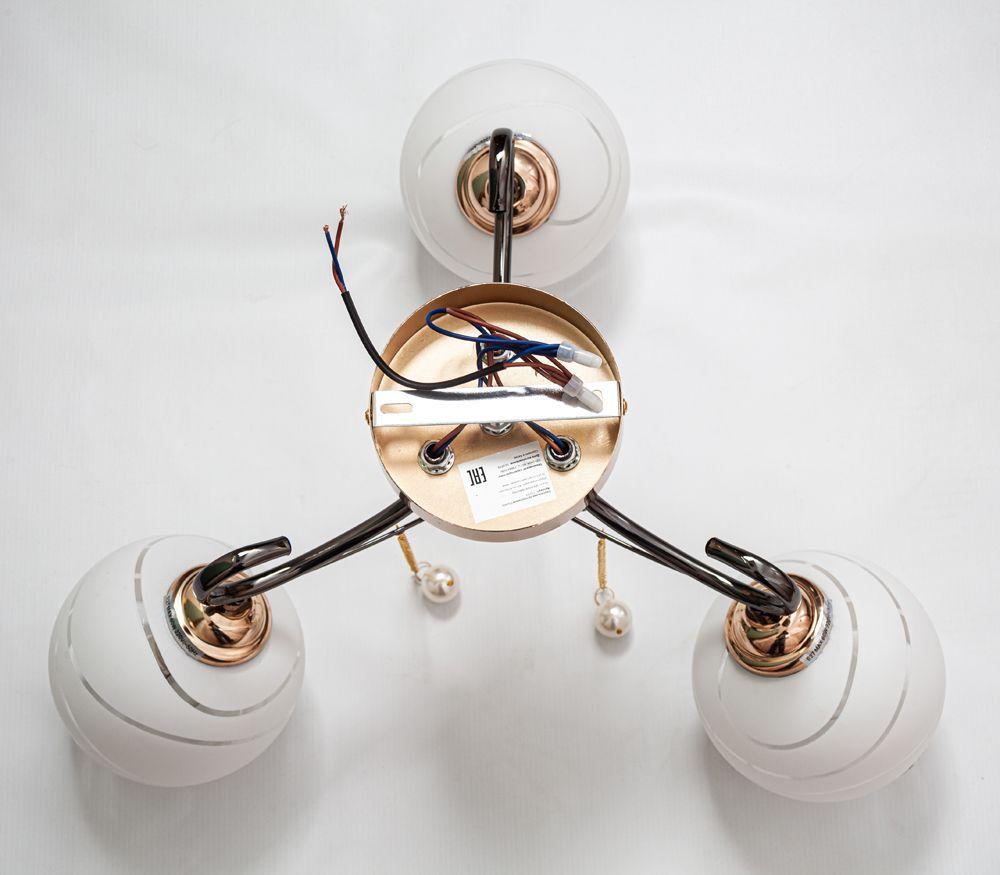 Производитель светильника рекомендует для устройства 3 лампы накаливания с цоколем E27 и мощностью 60 W, что позволит осветить помещение площадью 10 кв.м. Габариты изделия: высота – 240 мм, диаметр – 525 мм.