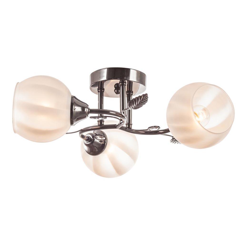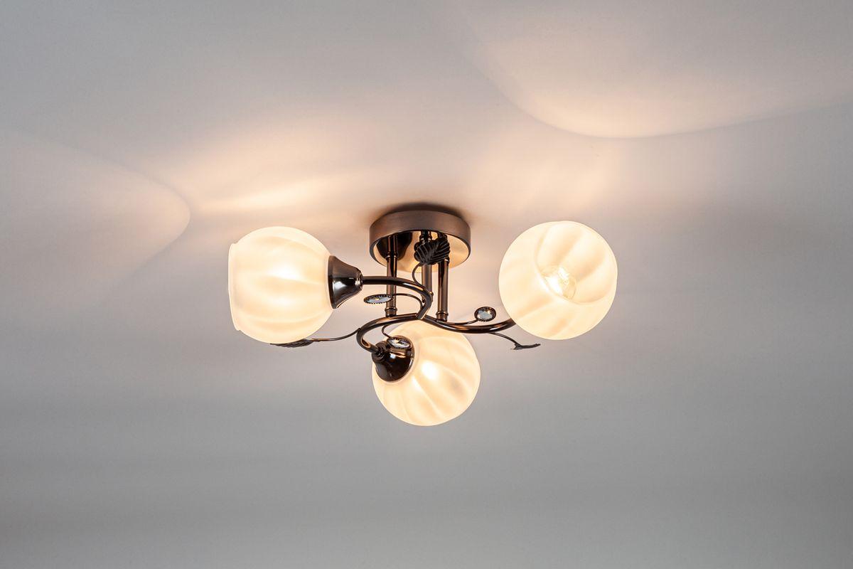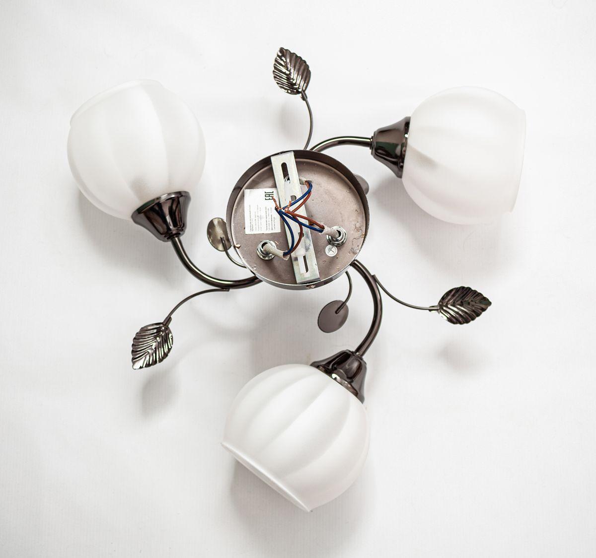 Производитель светильника рекомендует для устройства 3 лампы накаливания с цоколем E27 и мощностью 60 W, что позволит осветить помещение площадью 10 кв.м. Габариты изделия: высота – 250 мм, диаметр – 470 мм.