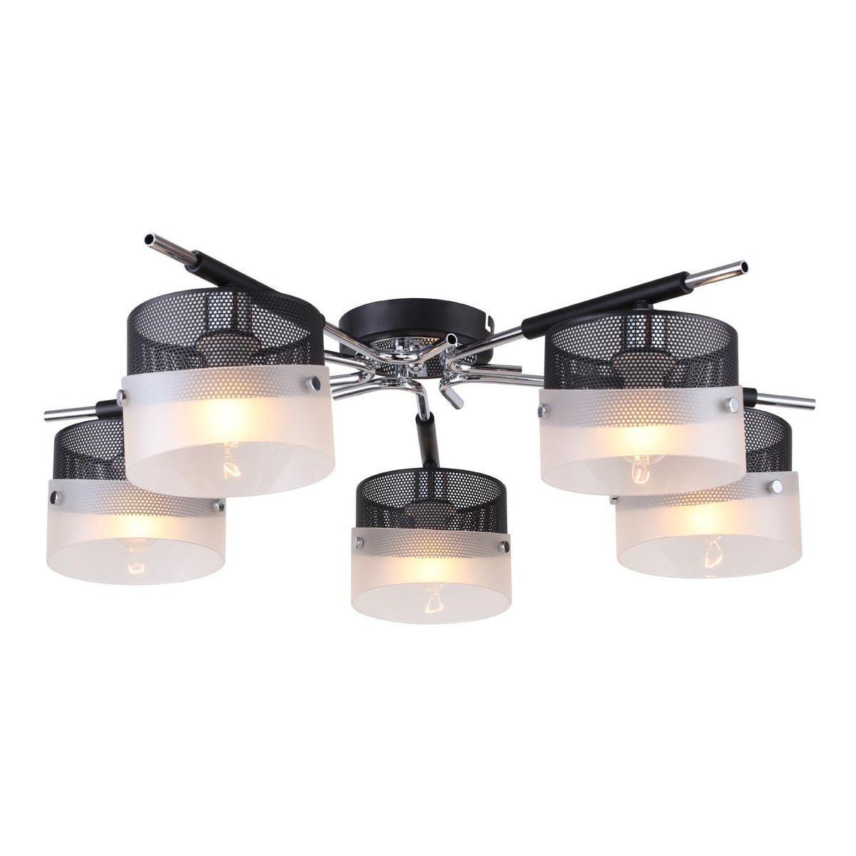 Производитель светильника рекомендует для устройства 5 ламп накаливания с цоколем E14 и мощностью 40 W, что позволит осветить помещение площадью 11,1 кв.м. Габариты изделия: высота – 175 мм, диаметр – 660 мм.