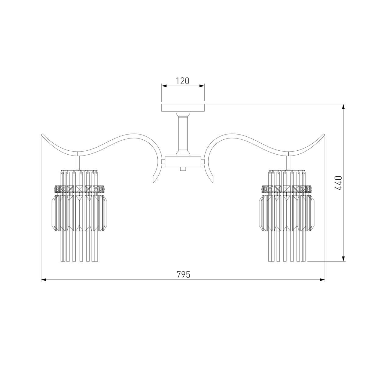 Производитель светильника рекомендует для устройства 8 ламп накаливания с цоколем E14 и мощностью 60 W, что позволит осветить помещение площадью 26 кв.м. Габариты изделия: высота – 440 мм, диаметр – 795 мм.