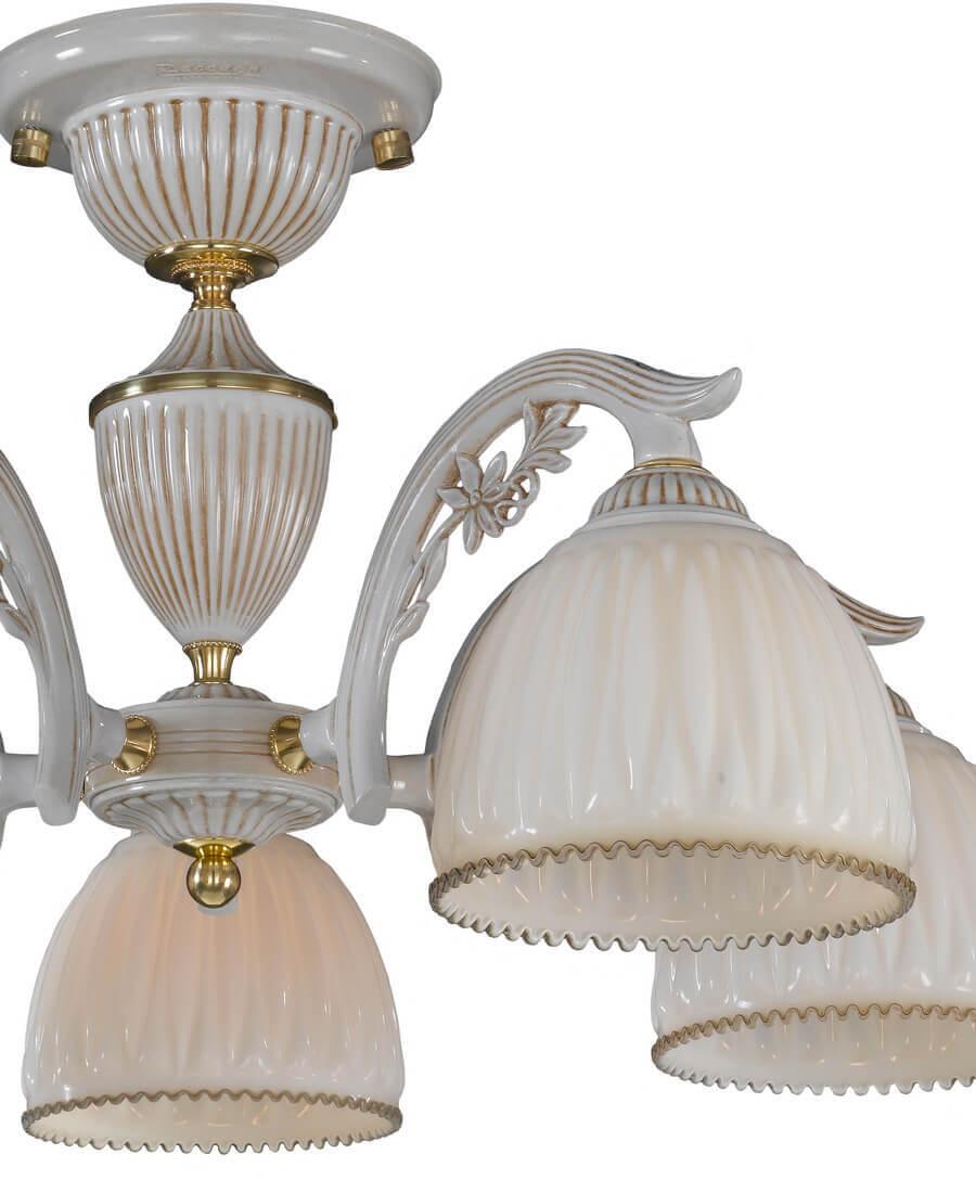 Потолочная люстра Reccagni Angelo PL.9671/5 от Итальянского бренда из коллекции 9671 будет удачно смотреться в гостиной в классиком стиле. Светильник выполнен из стекла с плафонами в форме белого цвета.