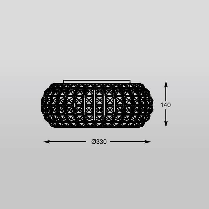 Производитель светильника рекомендует для устройства 4 галогеновые лампы с цоколем G9 и мощностью 42 W, что позволит осветить помещение площадью кв.м. Габариты изделия: высота – 140 мм, диаметр – 330 мм.