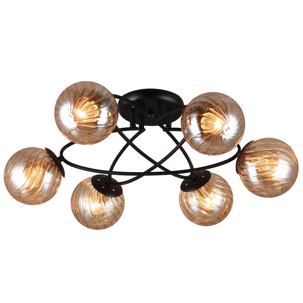 Производитель светильника рекомендует для устройства 6 ламп накаливания с цоколем E27 и мощностью 60 W, что позволит осветить помещение площадью 18 кв.м. Габариты изделия: высота – 230 мм, диаметр – 650 мм.