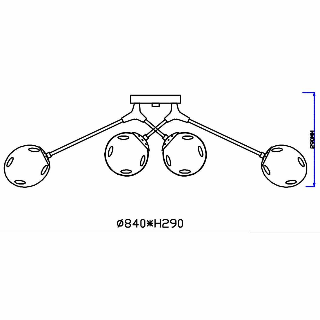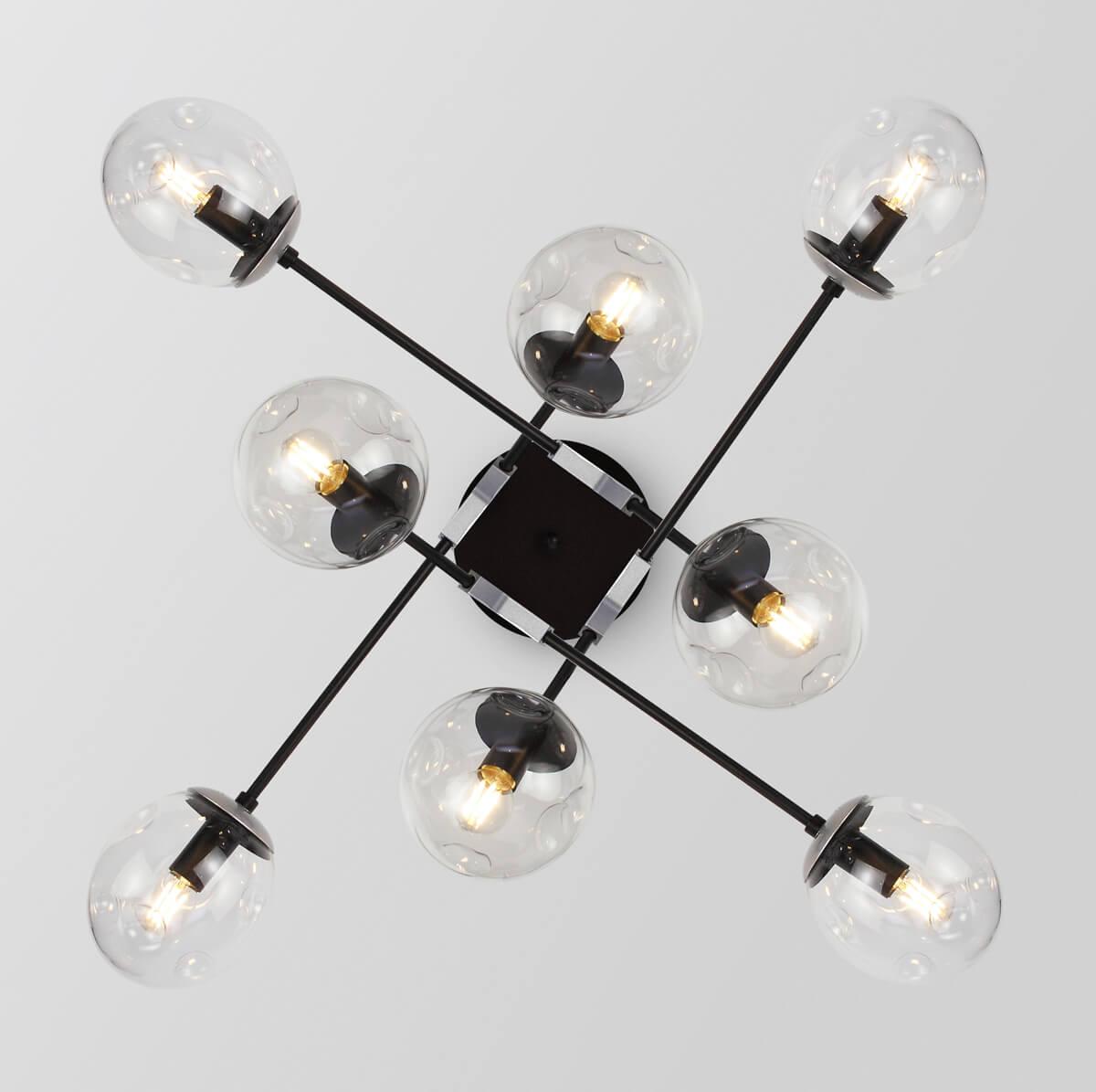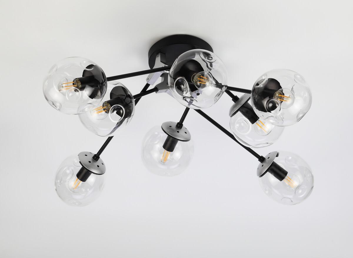 Производитель светильника рекомендует для устройства 8 ламп накаливания с цоколем E14 и мощностью 40 W, что позволит осветить помещение площадью 17,8 кв.м. Габариты изделия: высота – 290 мм, диаметр – 840 мм.
