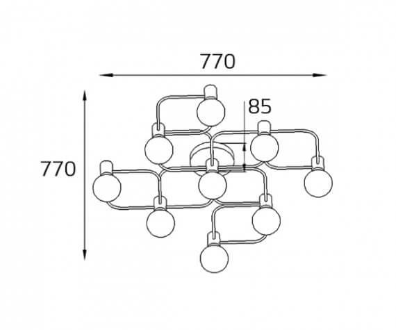 Производитель светильника рекомендует для устройства 9 светодиодных ламп с цоколем E27 и мощностью 14 W, что позволит осветить помещение площадью 63 кв.м. Габариты изделия: высота – 85 мм, диаметр – мм.