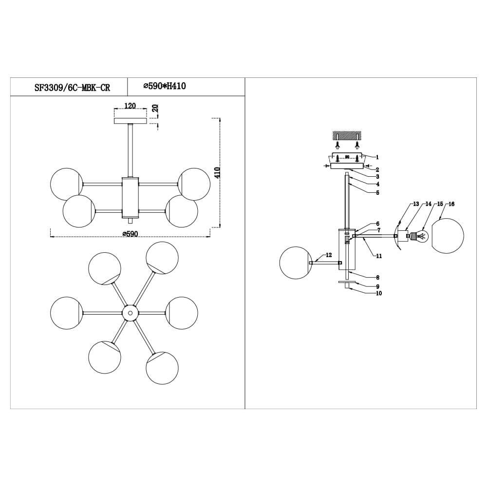 Потолочная люстра Seven Fires Эйми SF3309/6C-MBK-CR