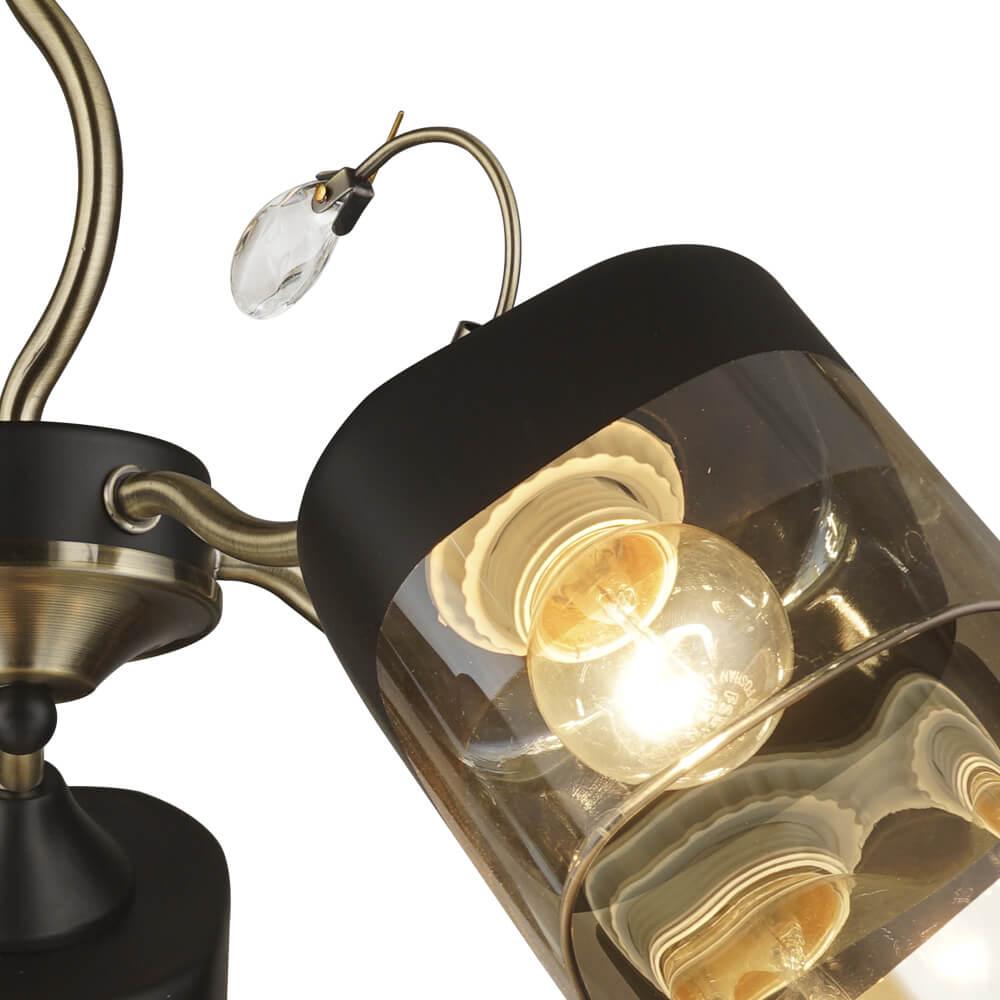 Производитель светильника рекомендует для устройства 5 ламп накаливания с цоколем E27 и мощностью 60 W, что позволит осветить помещение площадью 16,7 кв.м. Габариты изделия: высота – 310 мм, диаметр – 575 мм.
