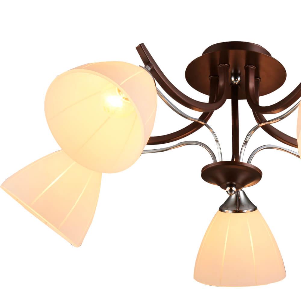 Производитель светильника рекомендует для устройства 5 ламп накаливания с цоколем E27 и мощностью 60 W, что позволит осветить помещение площадью 16,7 кв.м. Габариты изделия: высота – 270 мм, диаметр – 650 мм.