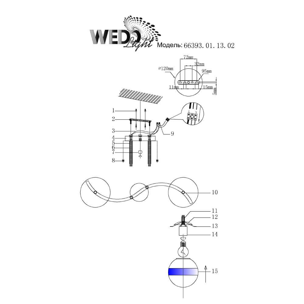Производитель светильника рекомендует для устройства 2 лампы накаливания с цоколем E27 и мощностью 60 W, что позволит осветить помещение площадью 6,7 кв.м. Габариты изделия: высота – 260 мм, диаметр – мм.