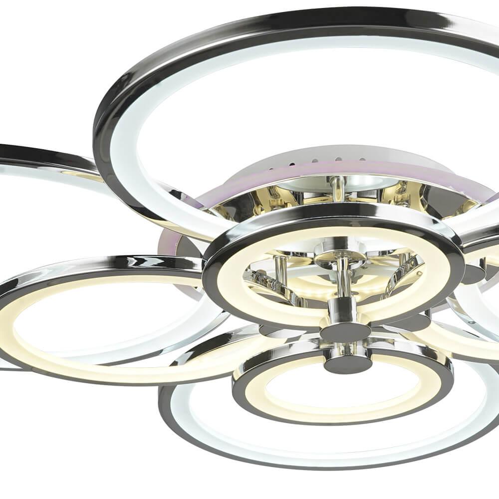Потолочная светодиодная люстра Seven Fires Levanto 75381.01.03.08 от Китайского бренда из коллекции Levanto будет удачно смотреться в гостиной в хай-тек стиле. Светильник выполнен из акрила с плафонами в форме цвет хрома.