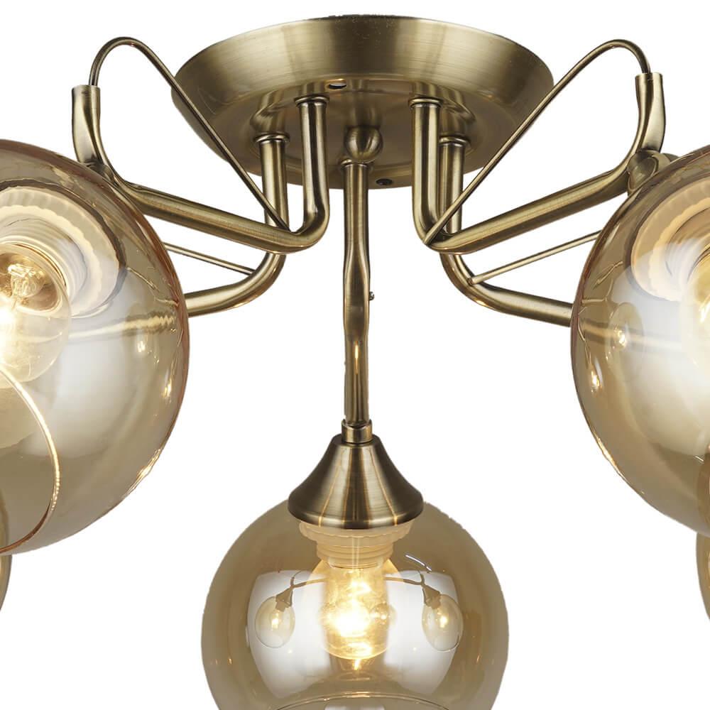 Производитель светильника рекомендует для устройства 5 ламп накаливания с цоколем E27 и мощностью 60 W, что позволит осветить помещение площадью 16,7 кв.м. Габариты изделия: высота – 210 мм, диаметр – 580 мм.