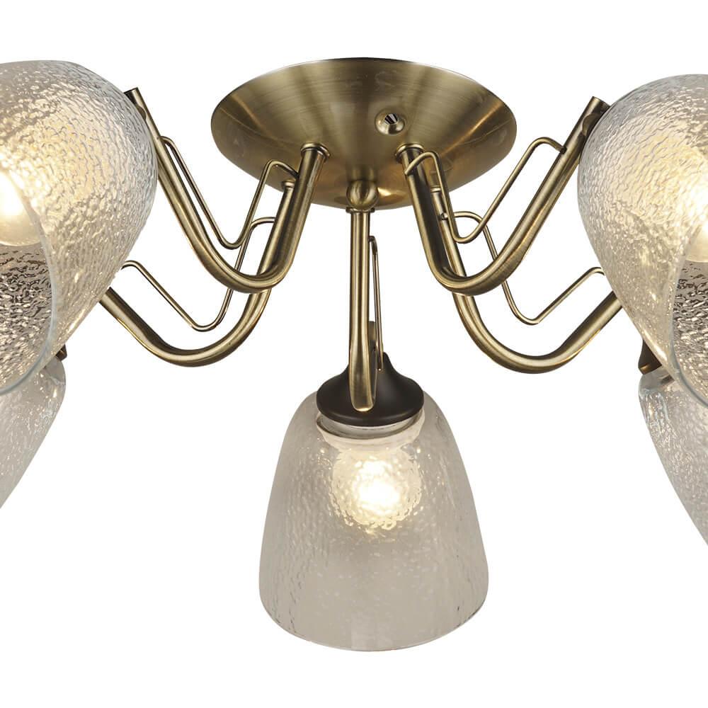Производитель светильника рекомендует для устройства 5 ламп накаливания с цоколем E27 и мощностью 60 W, что позволит осветить помещение площадью 16,7 кв.м. Габариты изделия: высота – 200 мм, диаметр – 610 мм.