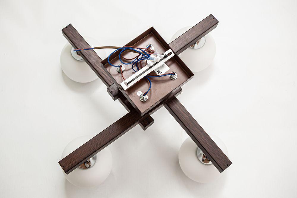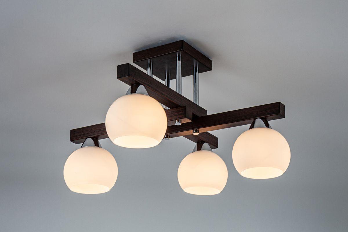 Производитель светильника рекомендует для устройства 4 лампы накаливания с цоколем E27 и мощностью 60 W, что позволит осветить помещение площадью 13,3 кв.м. Габариты изделия: высота – 300 мм, диаметр – мм.
