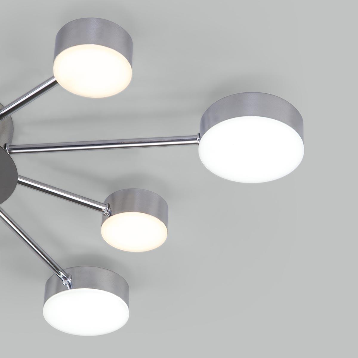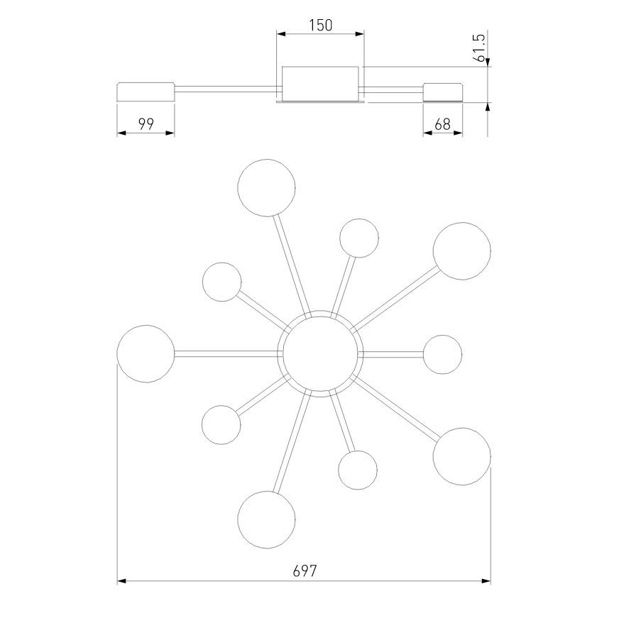 Производитель светильника рекомендует для устройства светодиодных ламп с цоколем LED и мощностью 90 W, что позволит осветить помещение площадью кв.м. Габариты изделия: высота – 62 мм, диаметр – 697 мм.