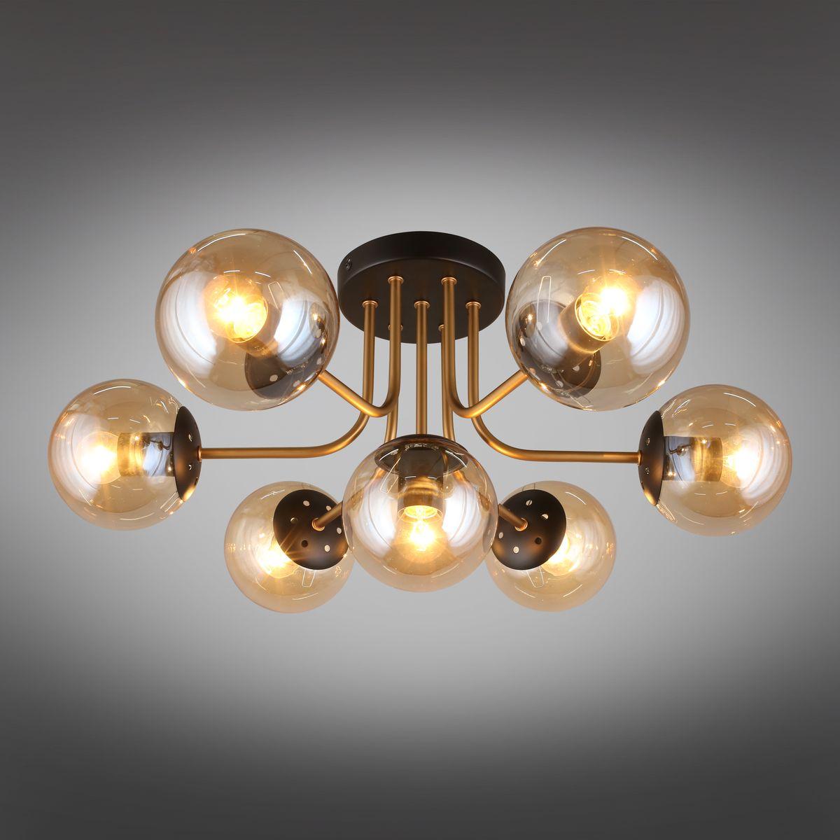 Производитель светильника рекомендует для устройства 7 ламп накаливания с цоколем E27 и мощностью 40 W, что позволит осветить помещение площадью кв.м. Габариты изделия: высота – 290 мм, диаметр – 650 мм.