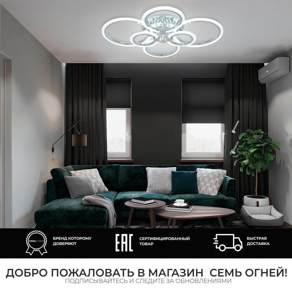 Потолочная люстра Seven Fires Matera SF7048/7C-CR от Российского бренда из коллекции Matera будет удачно смотреться в гостиной в хай-тек стиле. Светильник выполнен из акрила с плафонами в форме цвет хрома.