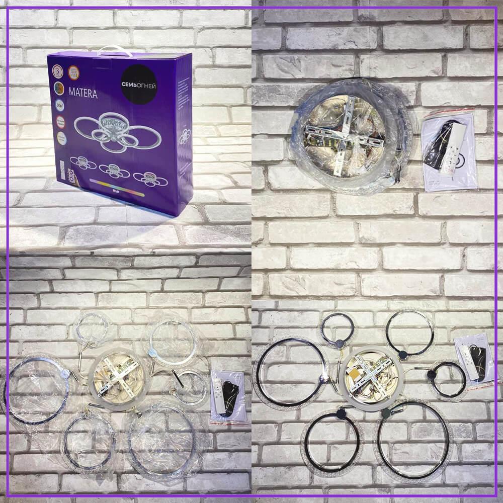 Производитель светильника рекомендует для устройства 7 светодиодных ламп с цоколем LED и мощностью 122 W, что позволит осветить помещение площадью 30 кв.м. Габариты изделия: высота – 120 мм, диаметр – мм.